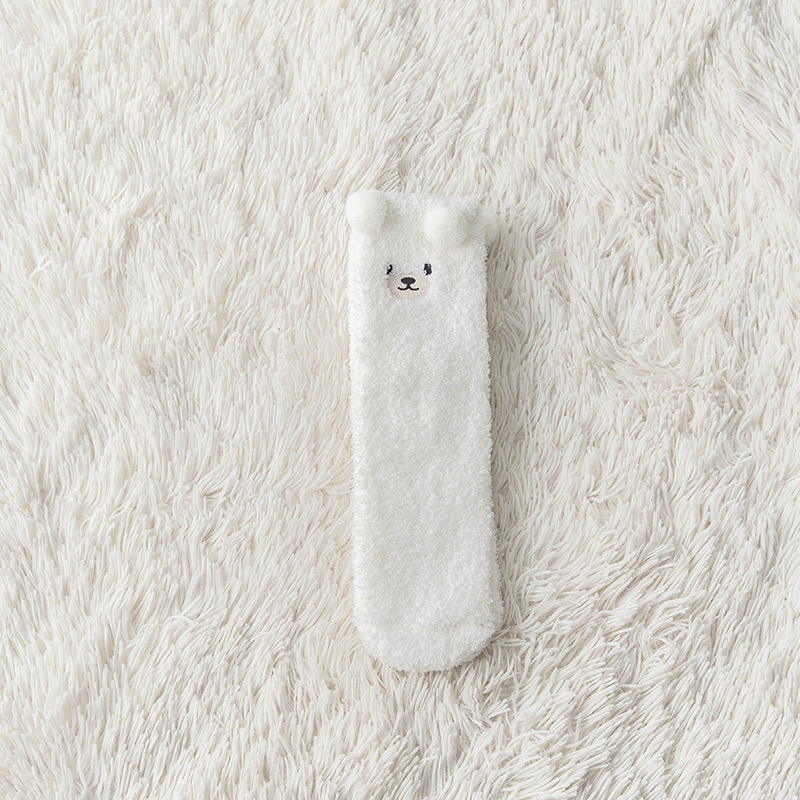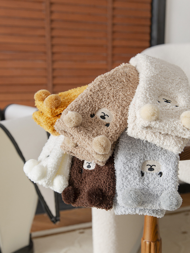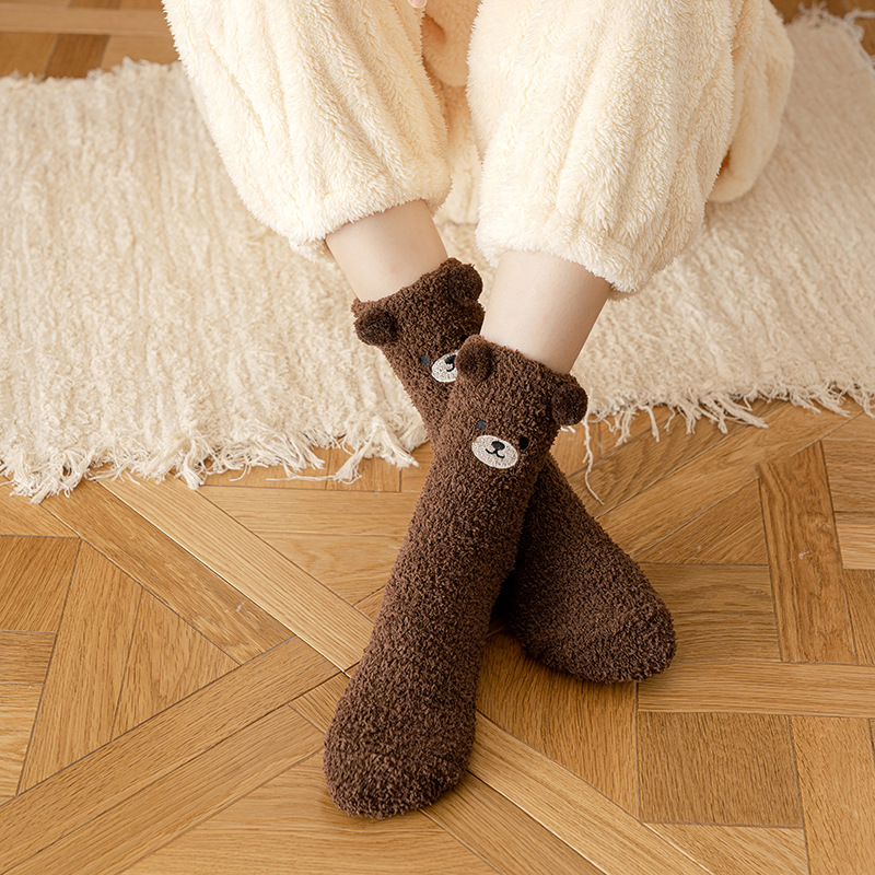 산호 벨벳 양말 겨울 기모 두꺼운 따뜻한 자수 귀여운 곰 수면 양말 캐주얼 올 매치 플로어 양말
