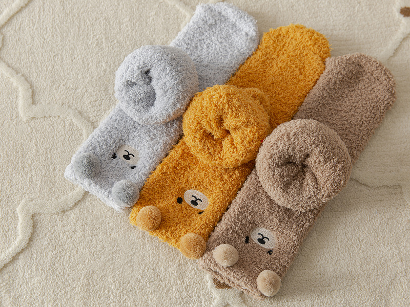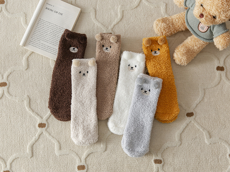 산호 벨벳 양말 겨울 기모 두꺼운 따뜻한 자수 귀여운 곰 수면 양말 캐주얼 올 매치 플로어 양말스토어 가기