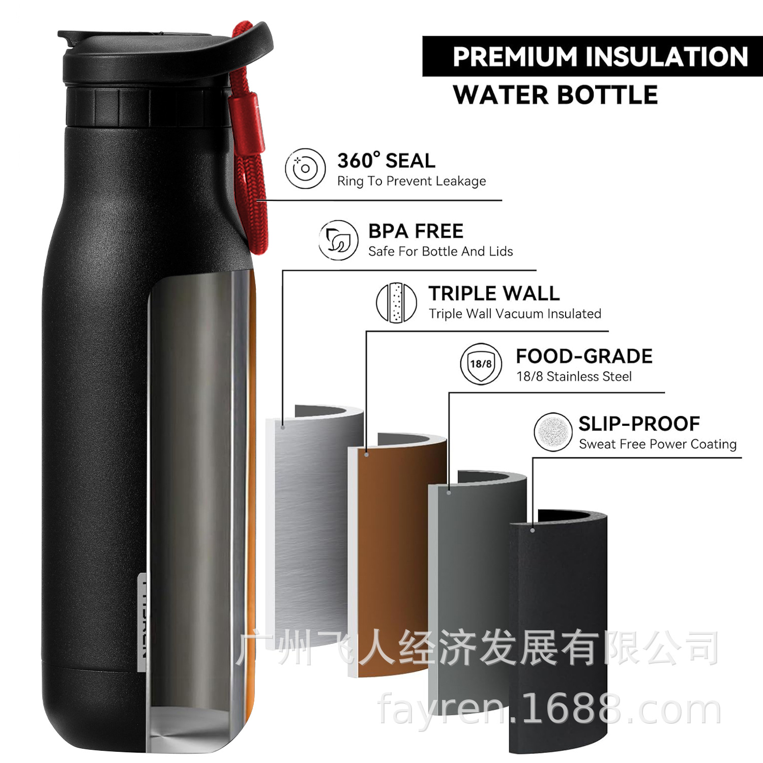 不锈钢运动水壶户外登山壶健身水杯双层真空保温杯带防滑硅胶杯套