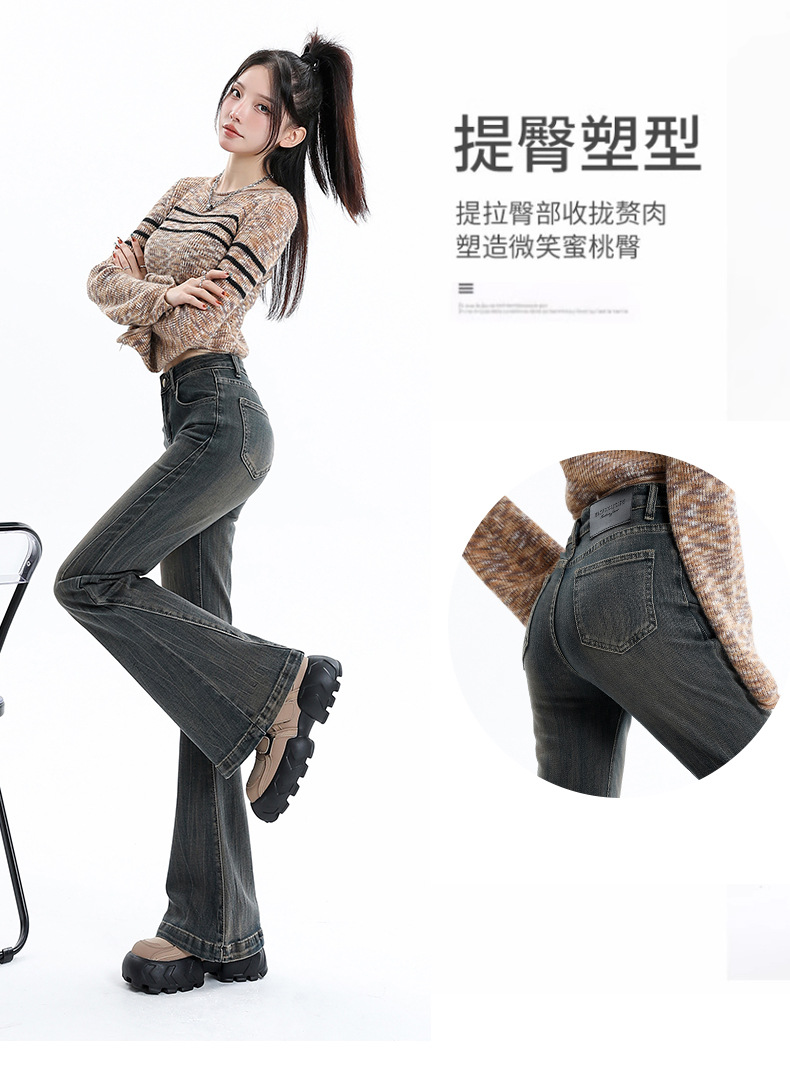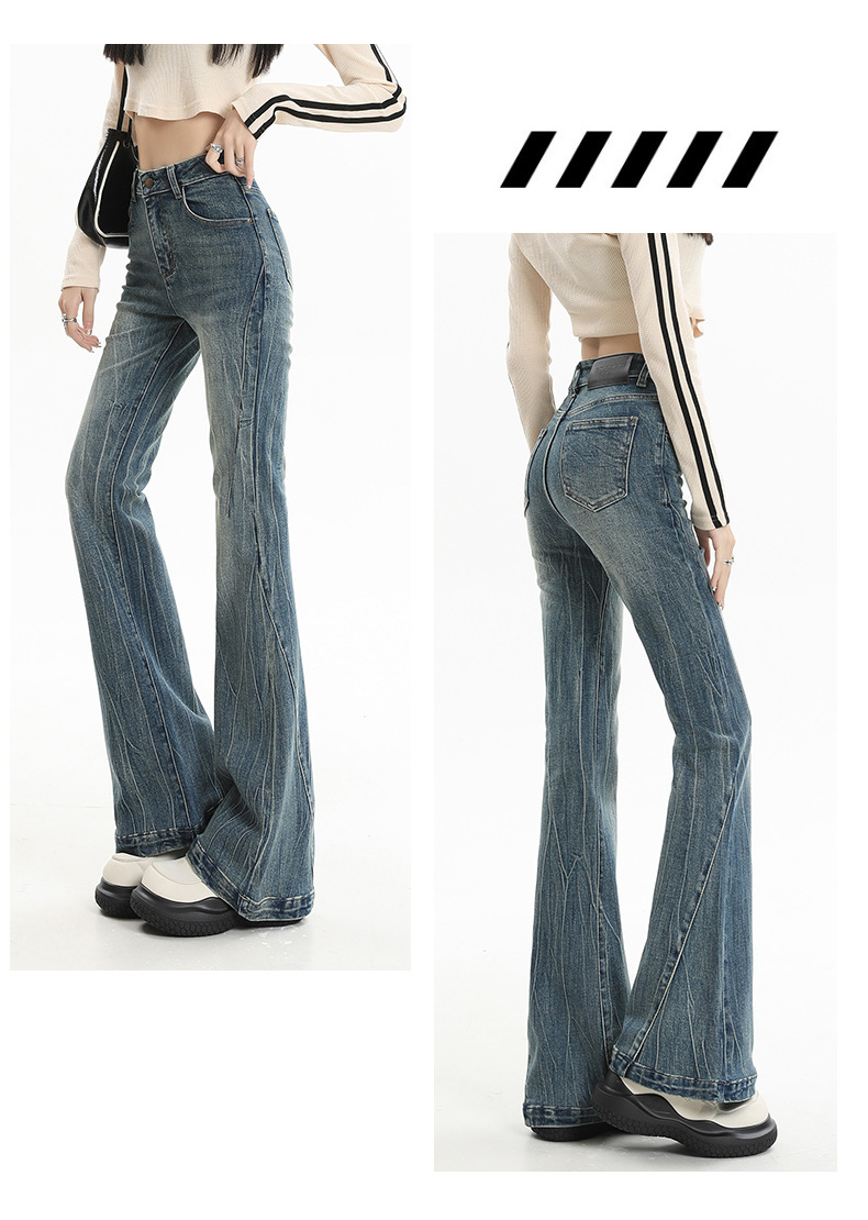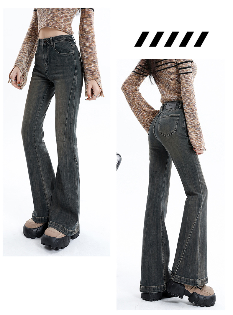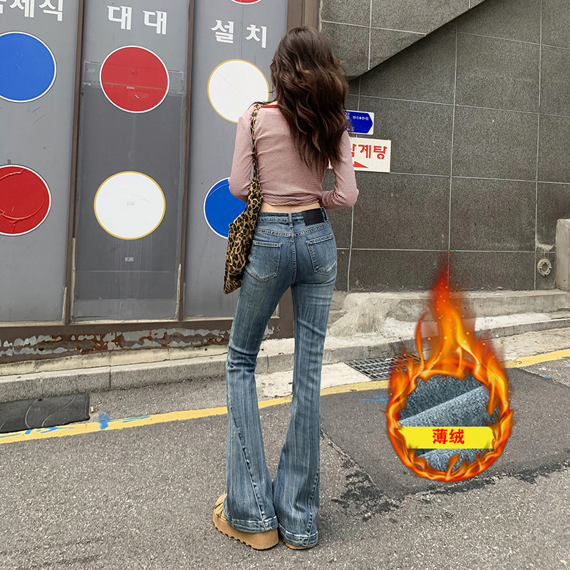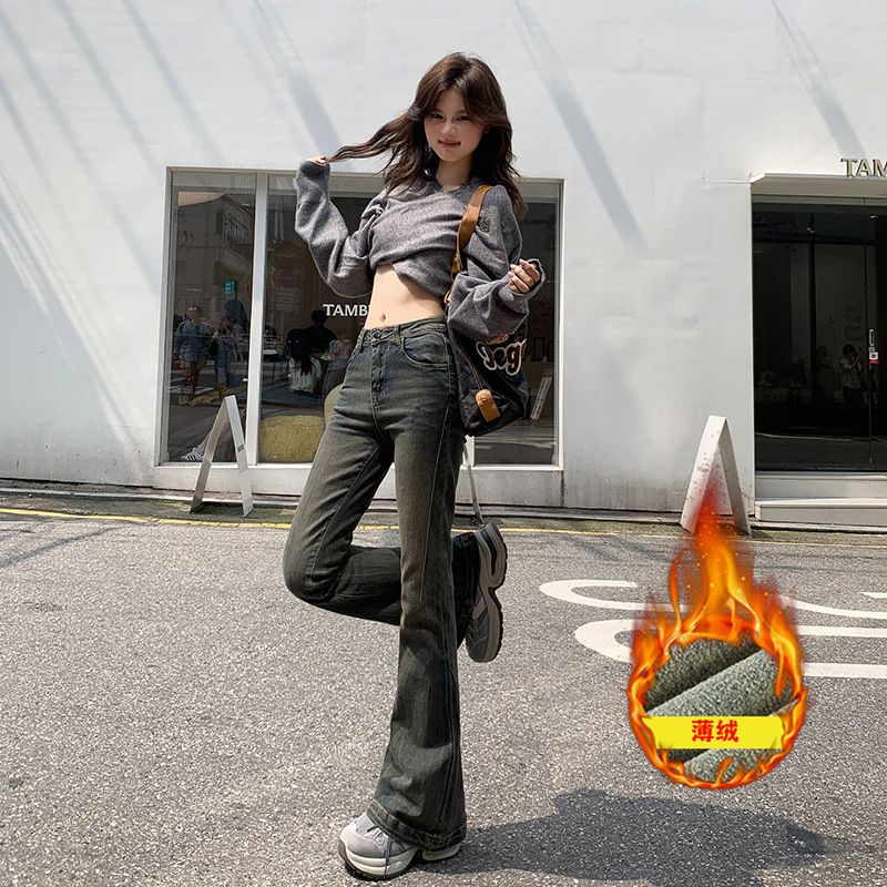 레트로 빈티지 부츠컷 청바지 여성용 2025 가을 겨울 신상 얇은 벨벳 아메리칸 스타일 하이웨이스트 슬림핏 말굽 바지스토어 가기