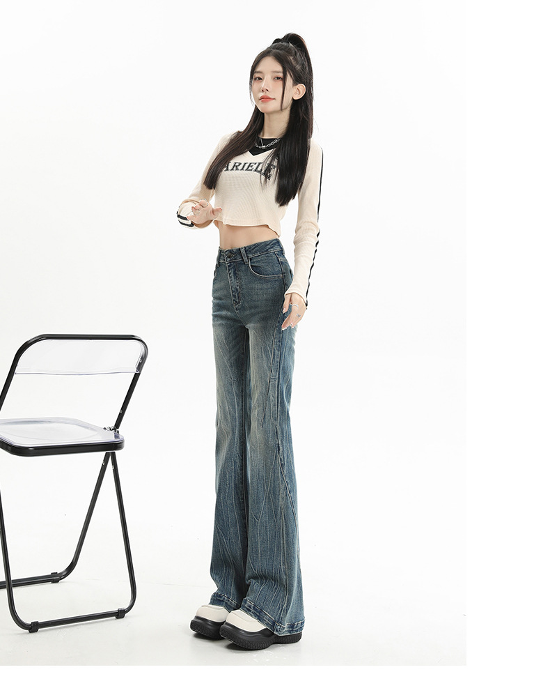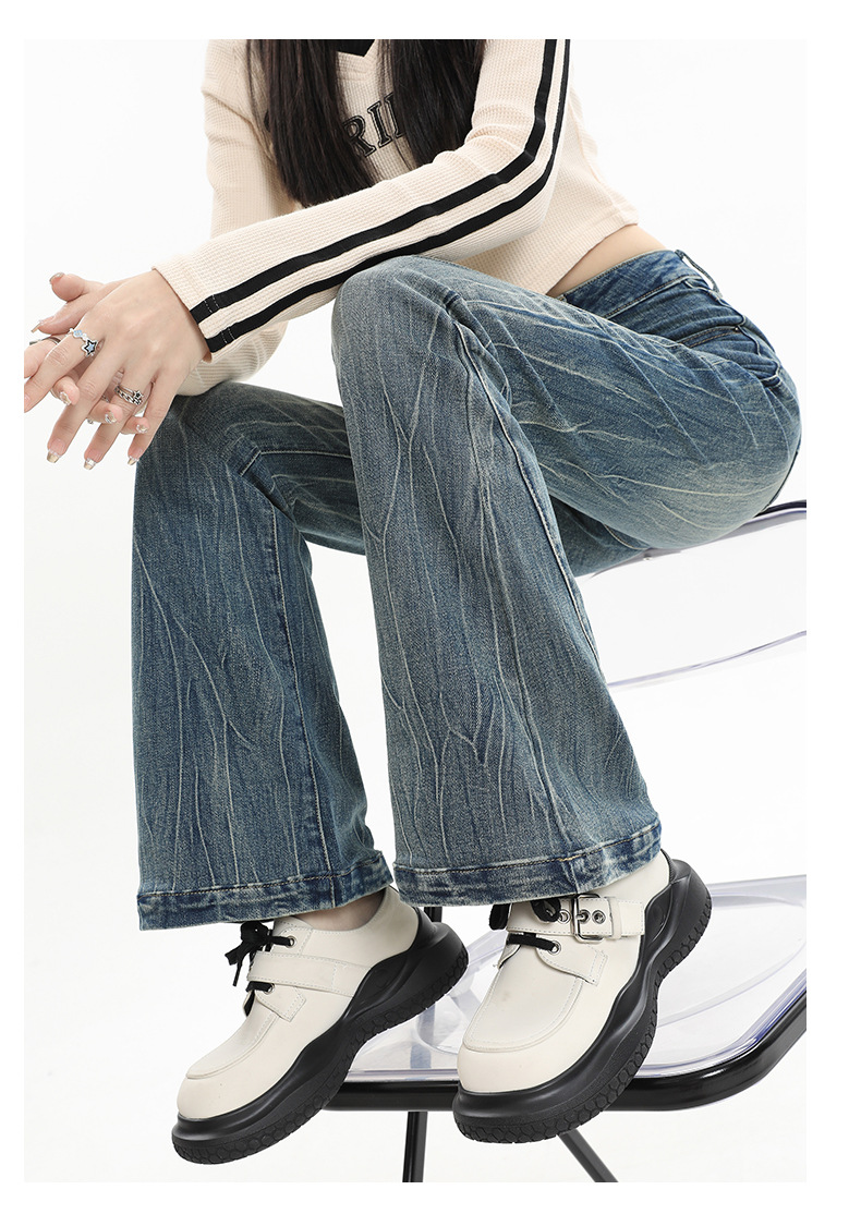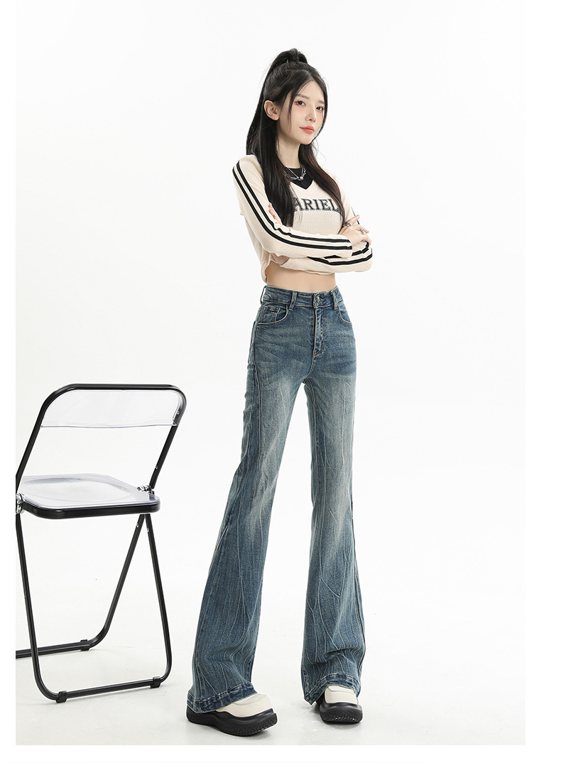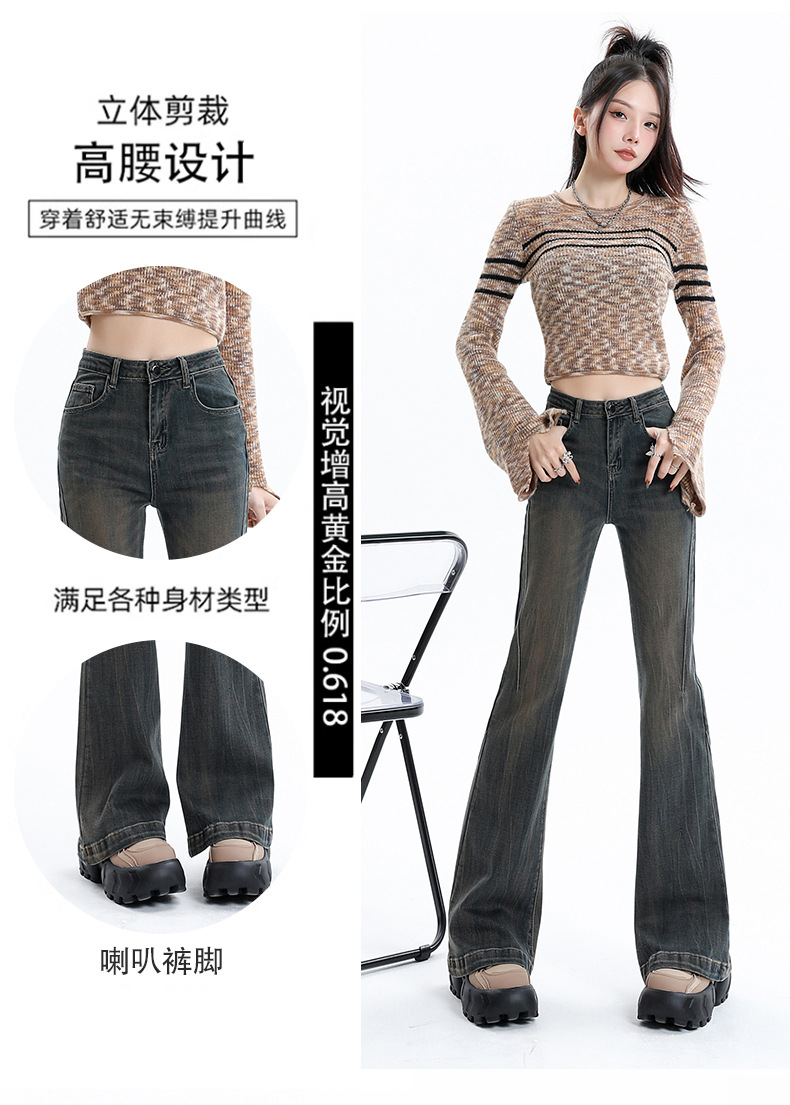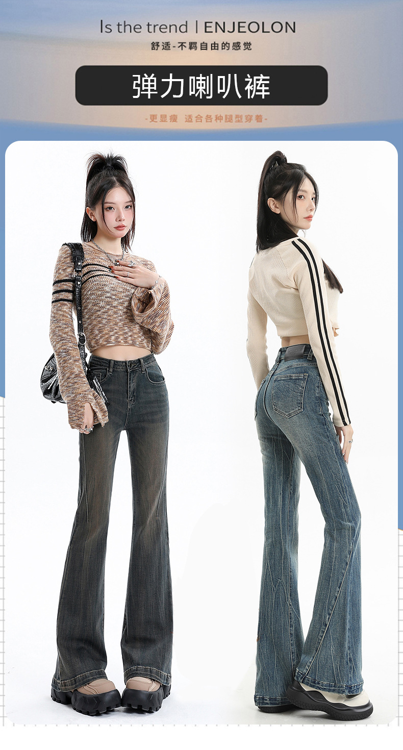 레트로 빈티지 부츠컷 청바지 여성용 2025 가을 겨울 신상 얇은 벨벳 아메리칸 스타일 하이웨이스트 슬림핏 말굽 바지스토어 가기