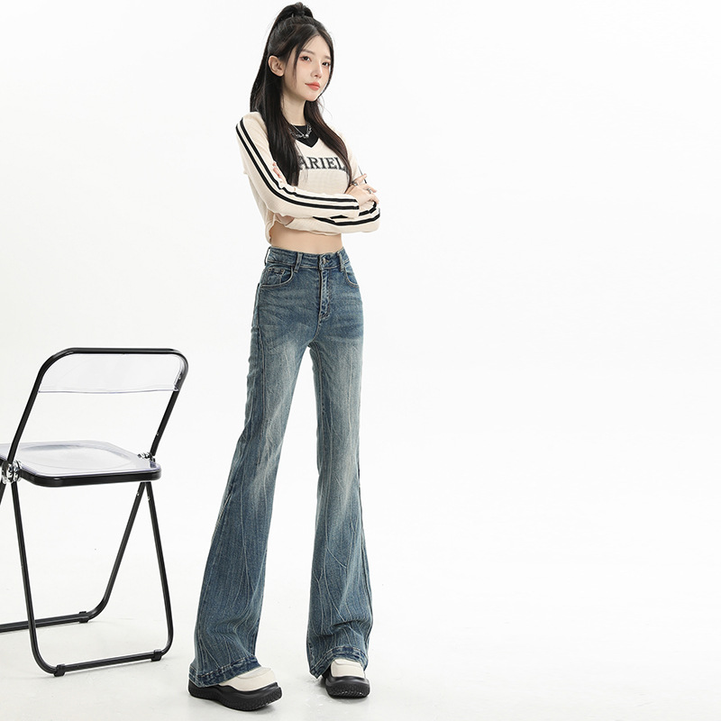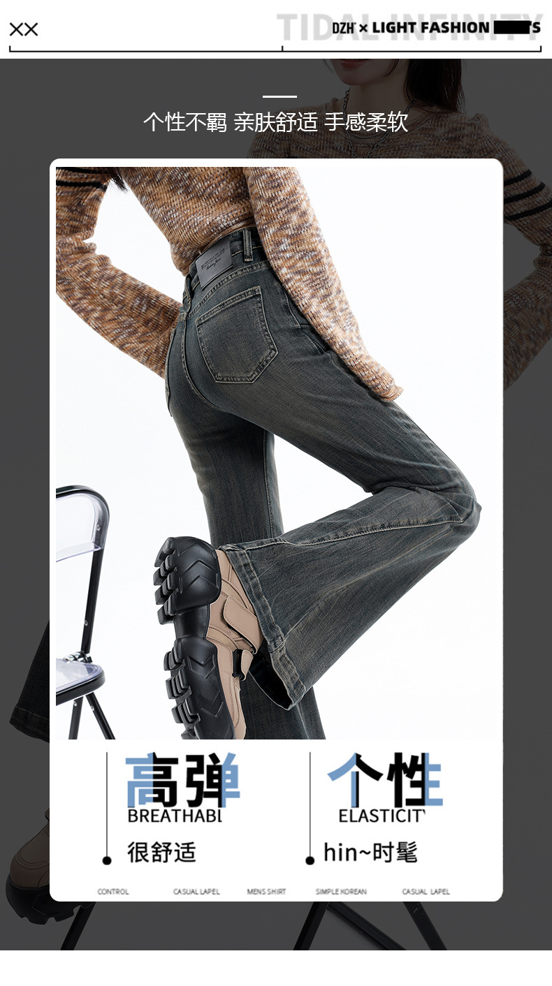 레트로 빈티지 부츠컷 청바지 여성용 2025 가을 겨울 신상 얇은 벨벳 아메리칸 스타일 하이웨이스트 슬림핏 말굽 바지