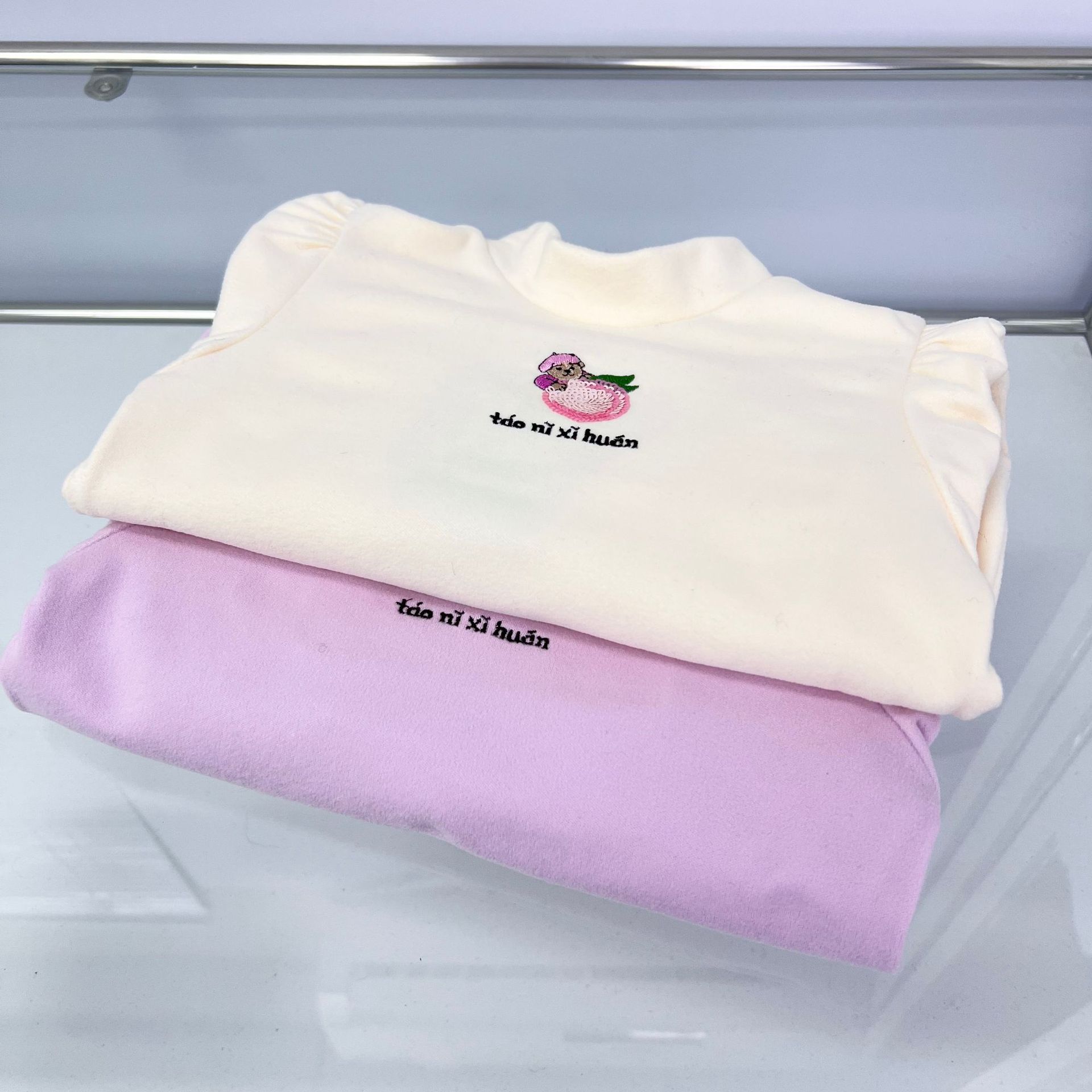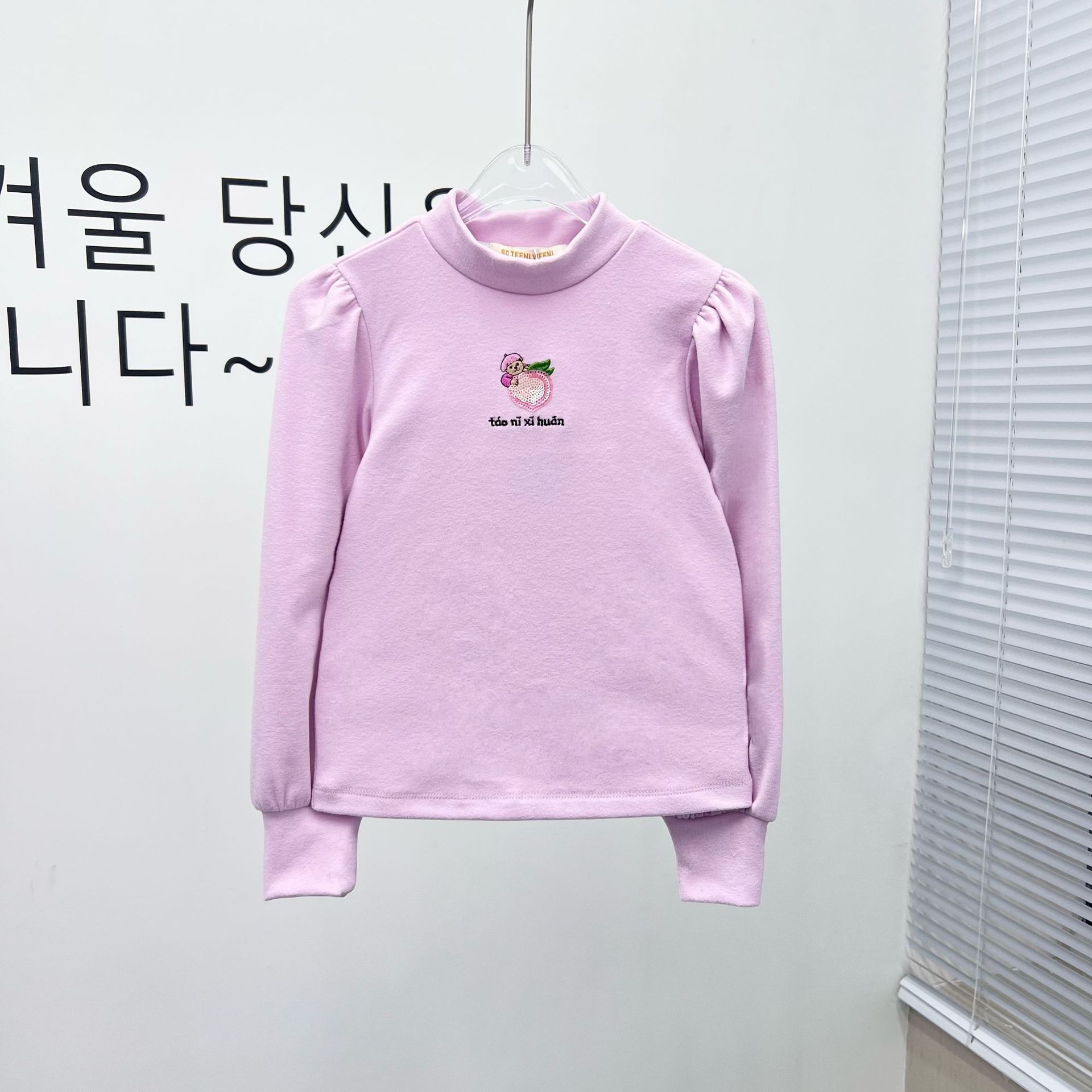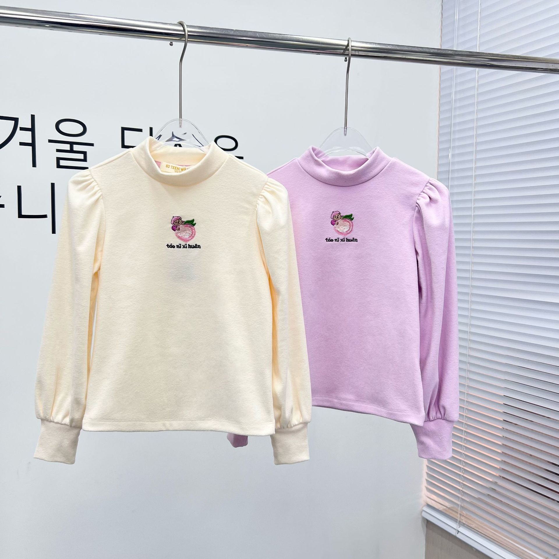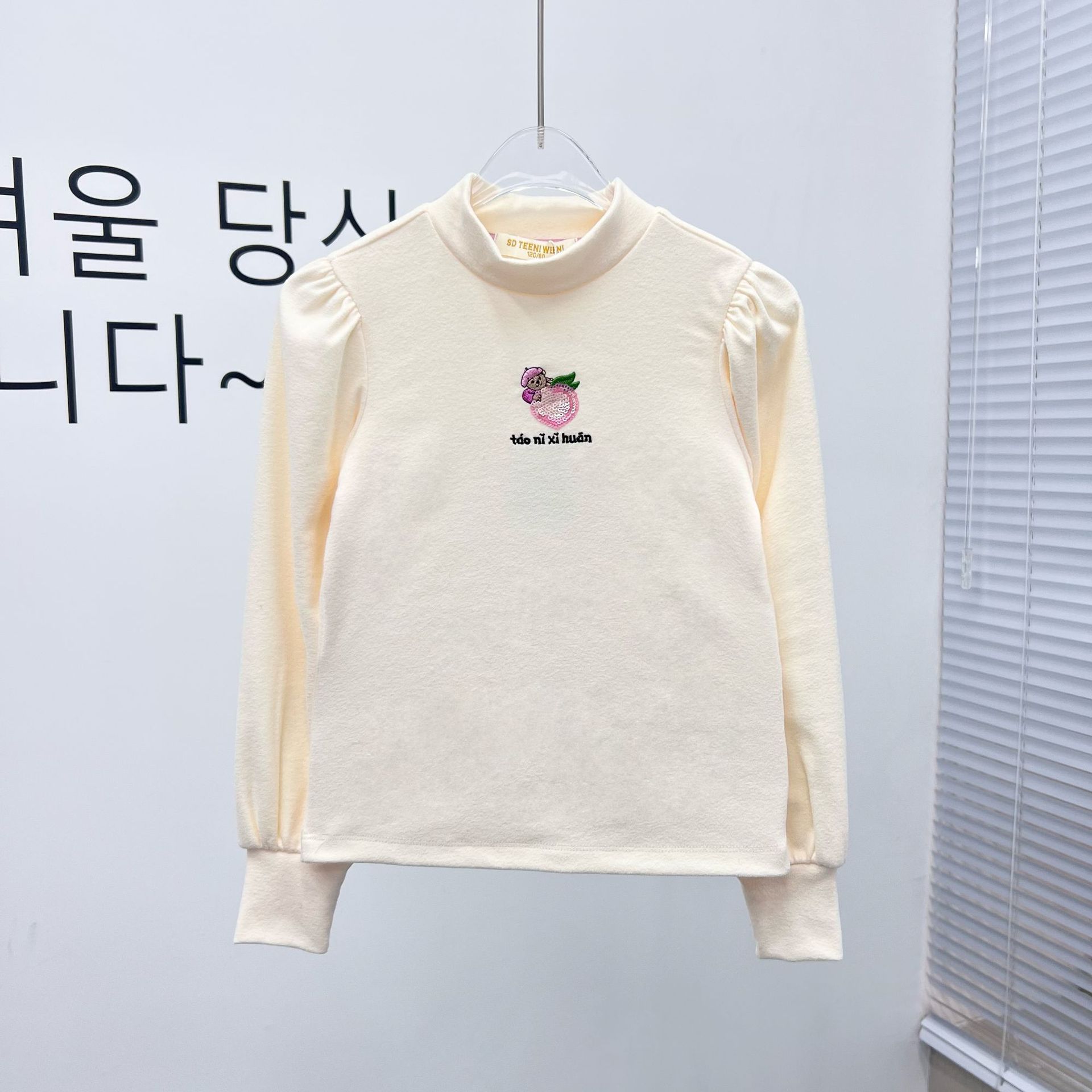 SDTW Bear Spring 새 소녀들의 작은 터틀넥 가을 퍼프 소매 긴 소매 티셔츠 바닥 셔츠 TKLA245141N스토어 가기