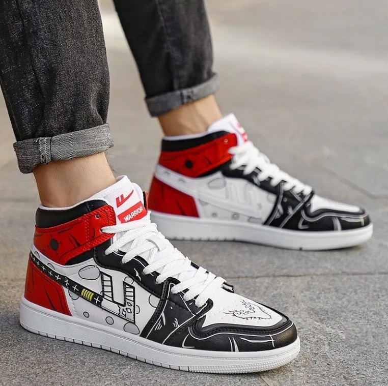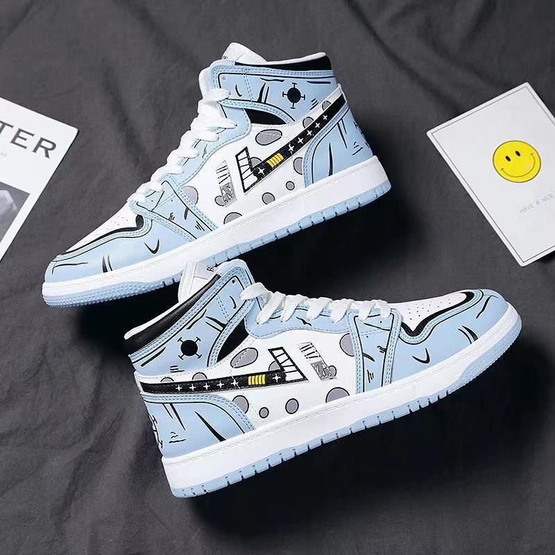 국내 운동화 2023 가을 신상 하이탑 운동화 가죽 방수 트렌디 남녀공용 다용도 핸드페인팅 에어포스원스토어 가기