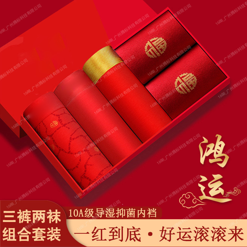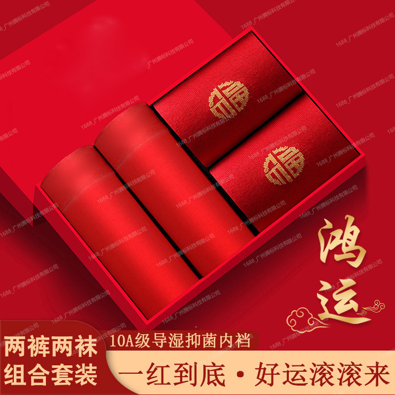 [박스형] 남성용 속옷, 축제용 빨간색 사각팬티, 모달 항균 반바지, 결혼식용 사각팬티스토어 가기