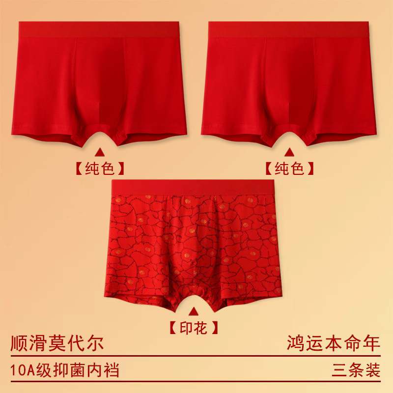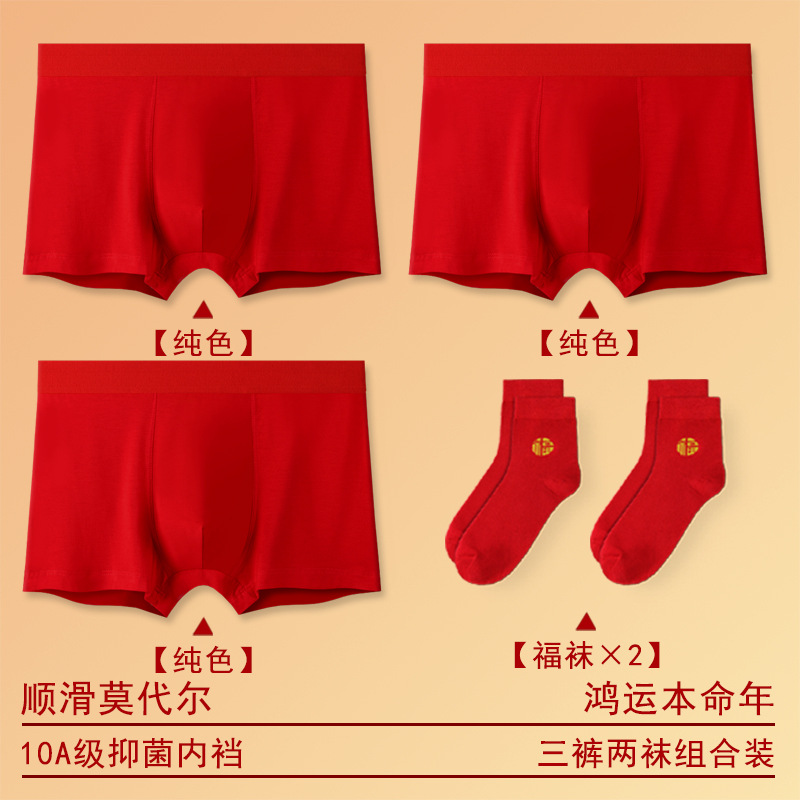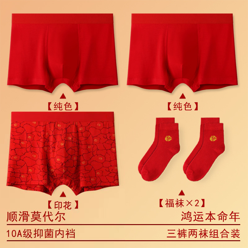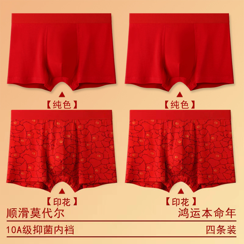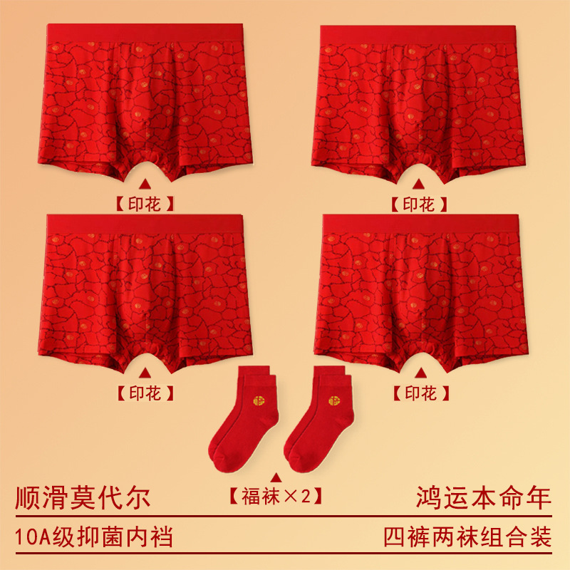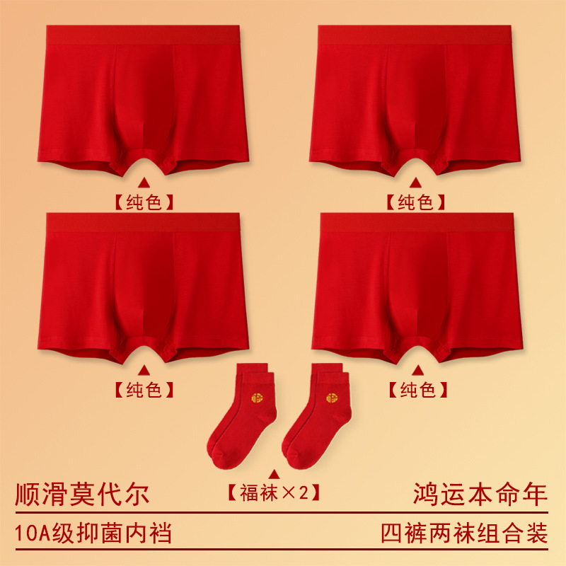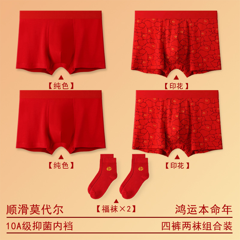[박스형] 남성용 속옷, 생년월일의 해에 입는 빨간색 사각팬티, 결혼식 반바지, 모달 항균 사각팬티