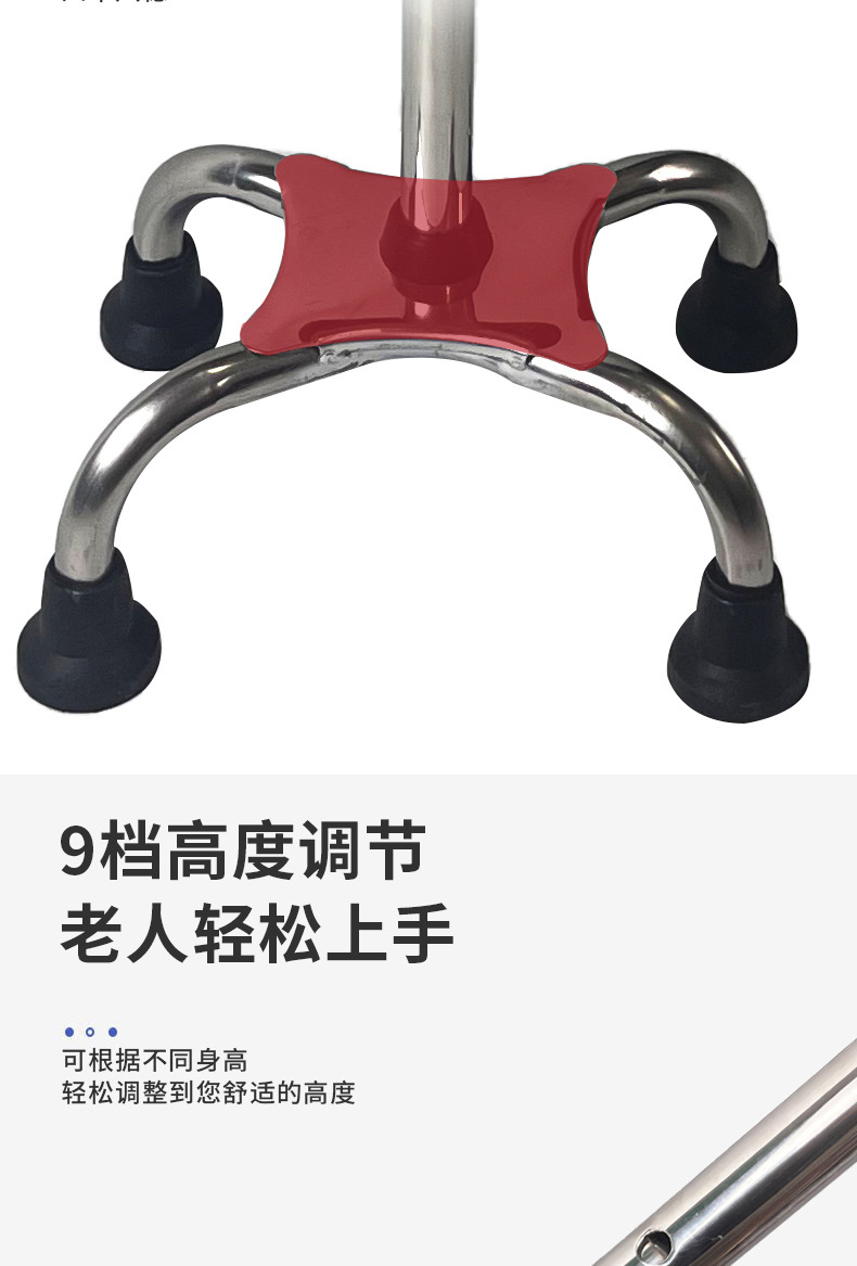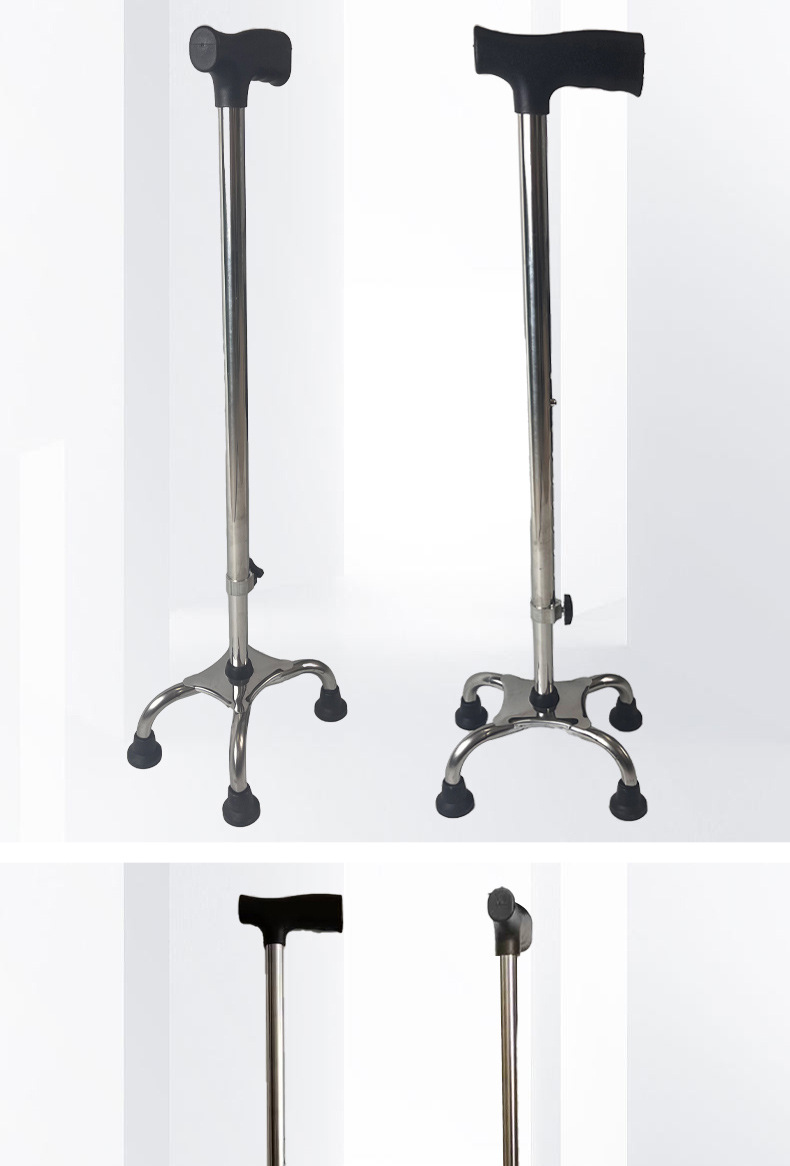 노인 도매 제조업체를위한 4 발의 미끄럼 방지 목발 높이 조절 가능한 스테인레스 스틸 보행 보조 목발 노인 4 발 목발