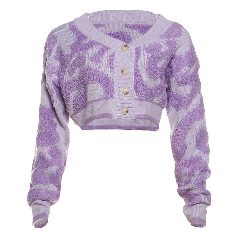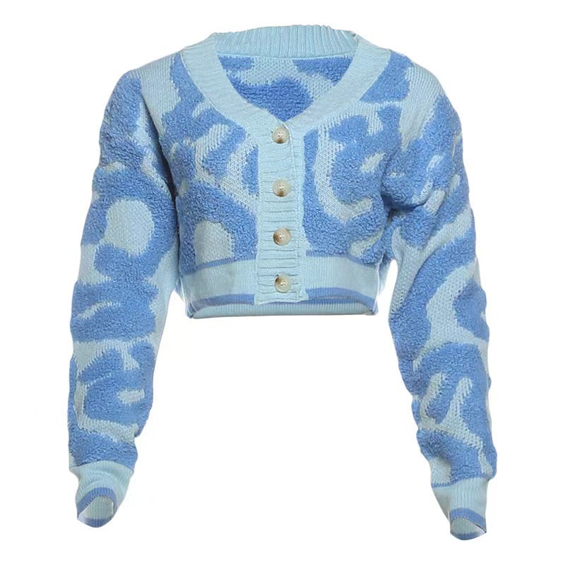 유럽과 미국 스타일 2024 새로운 가을 패션 달콤한 컬러 매칭 로우 컷 V 넥 버클 하이 허리 슬림 핏 니트 탑