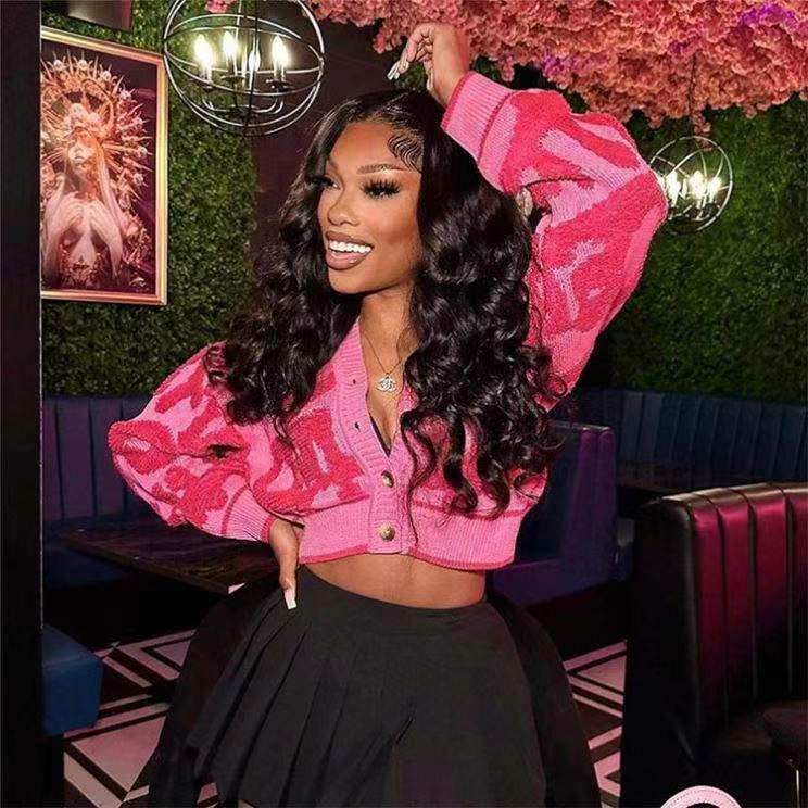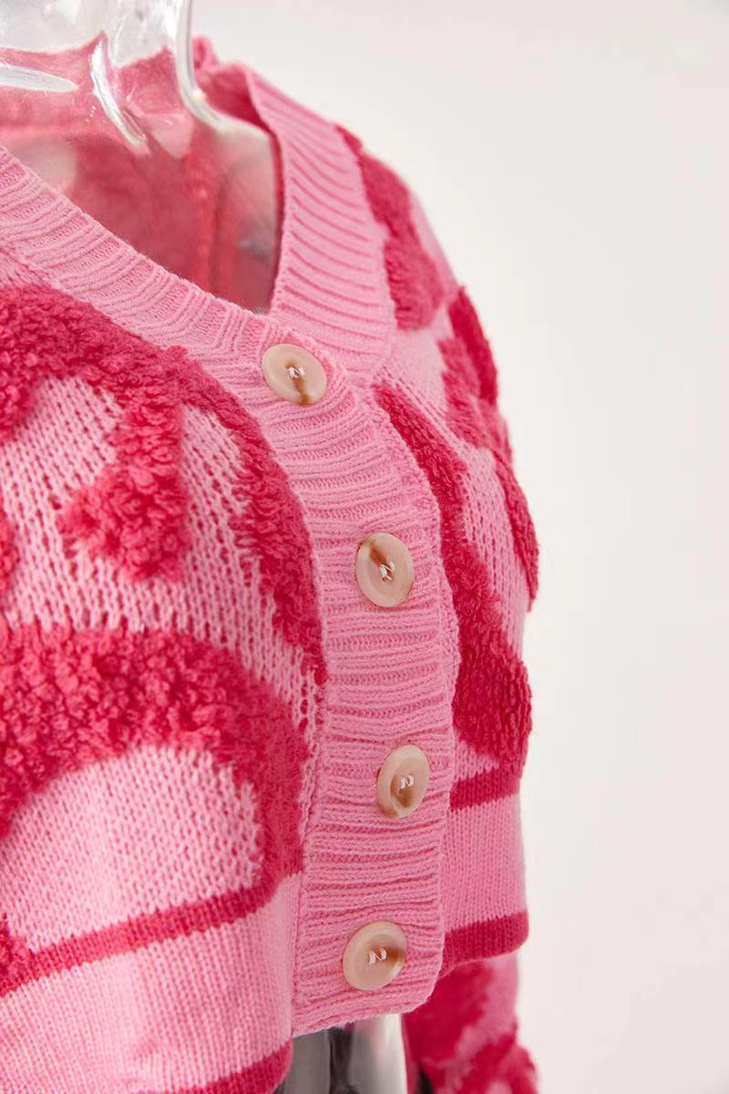 유럽과 미국 스타일 2024 새로운 가을 패션 달콤한 컬러 매칭 로우 컷 V 넥 버클 하이 허리 슬림 핏 니트 탑스토어 가기
