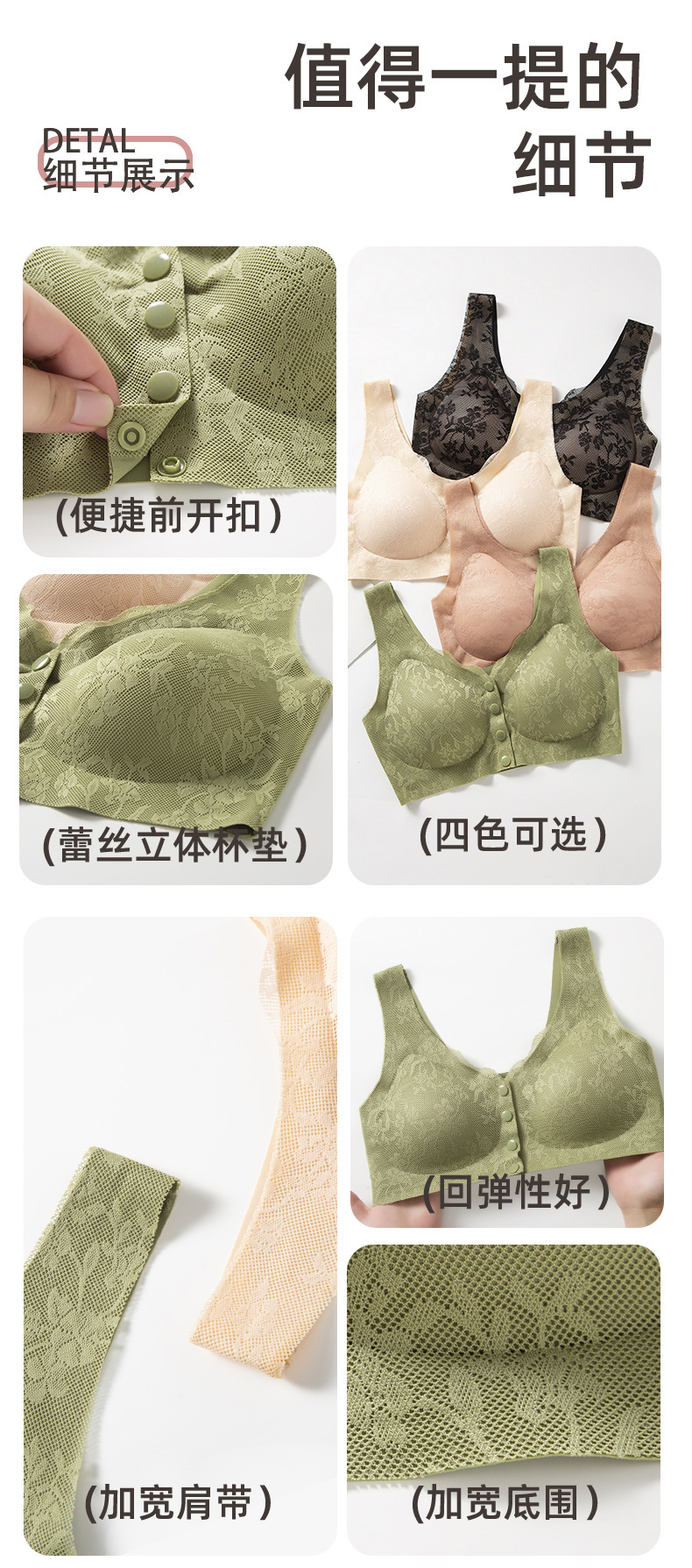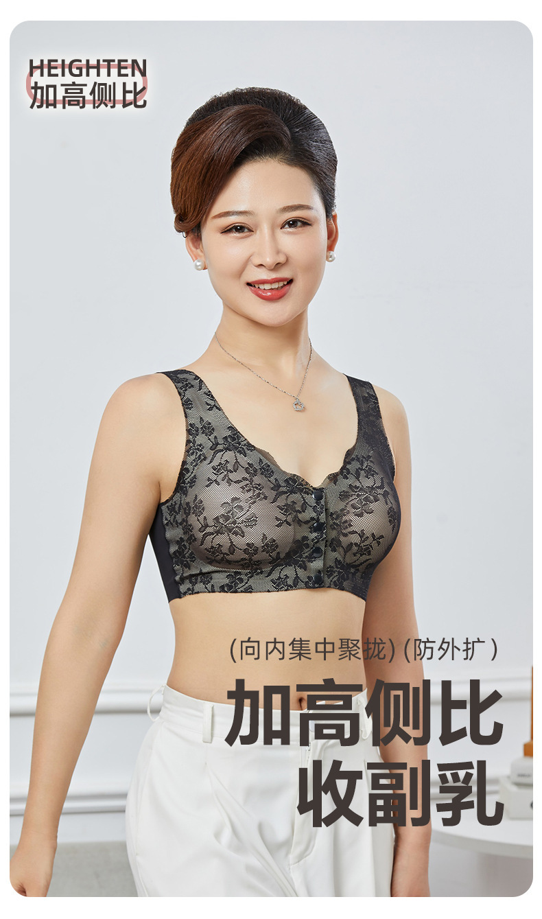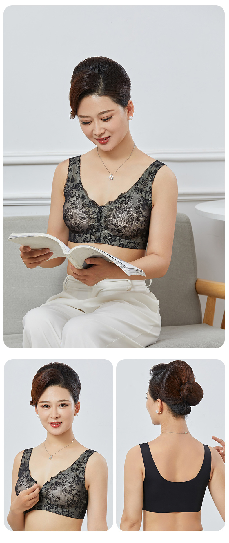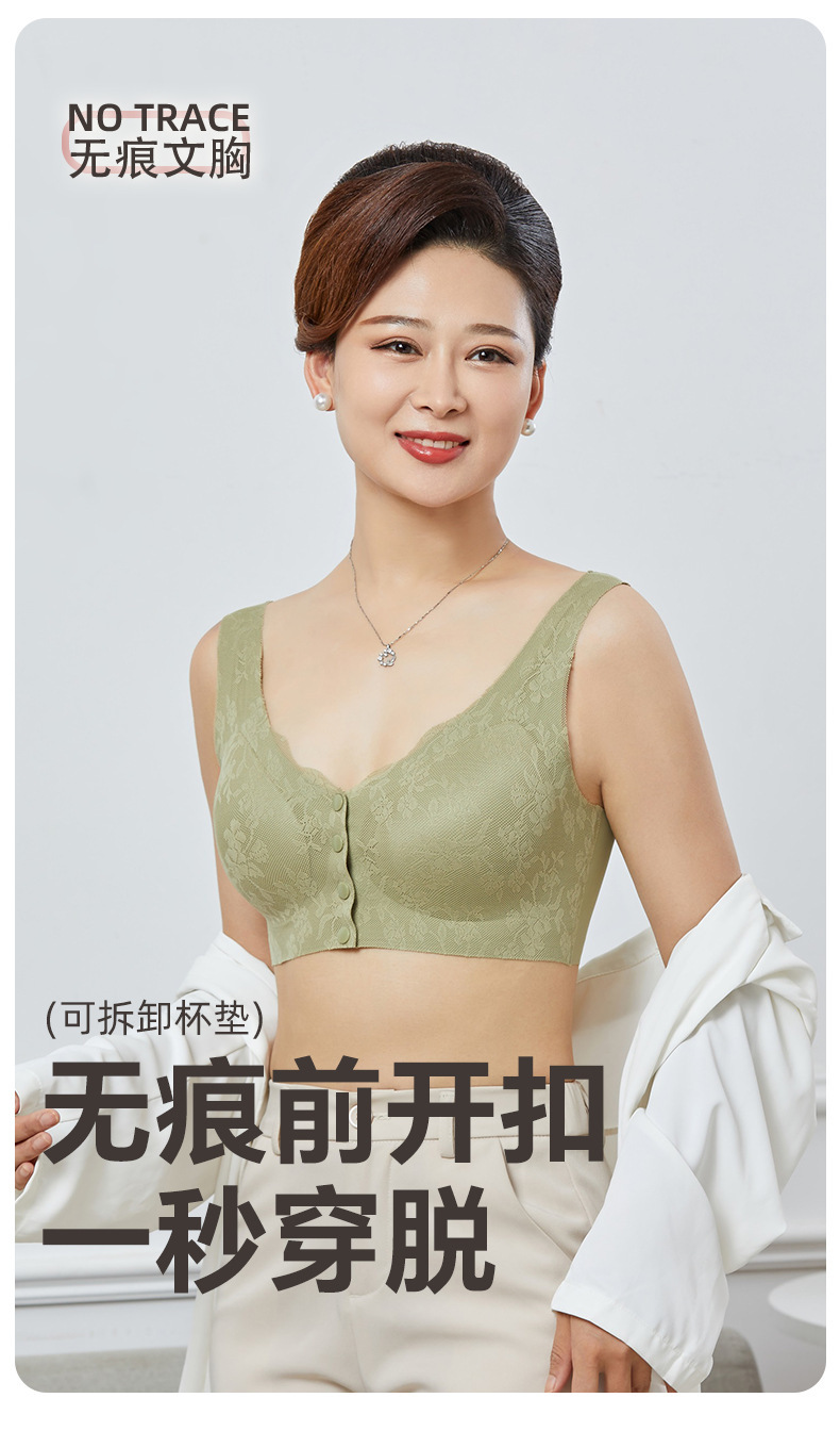 원피스 프론트 버클 어머니 속옷 원활한 뷰티 백 플러스 사이즈 브라 무선 수집 레이스 풀 컵 브래지어스토어 가기