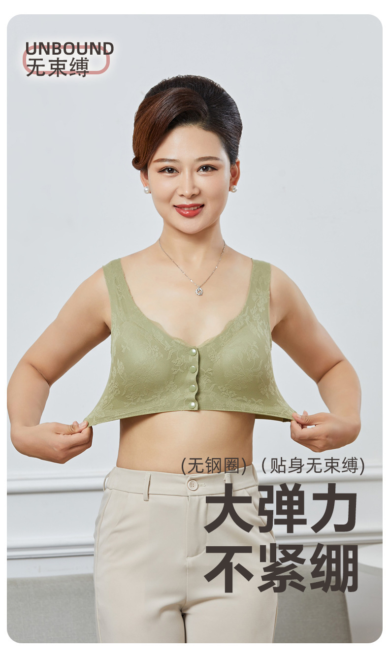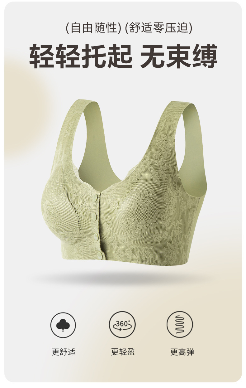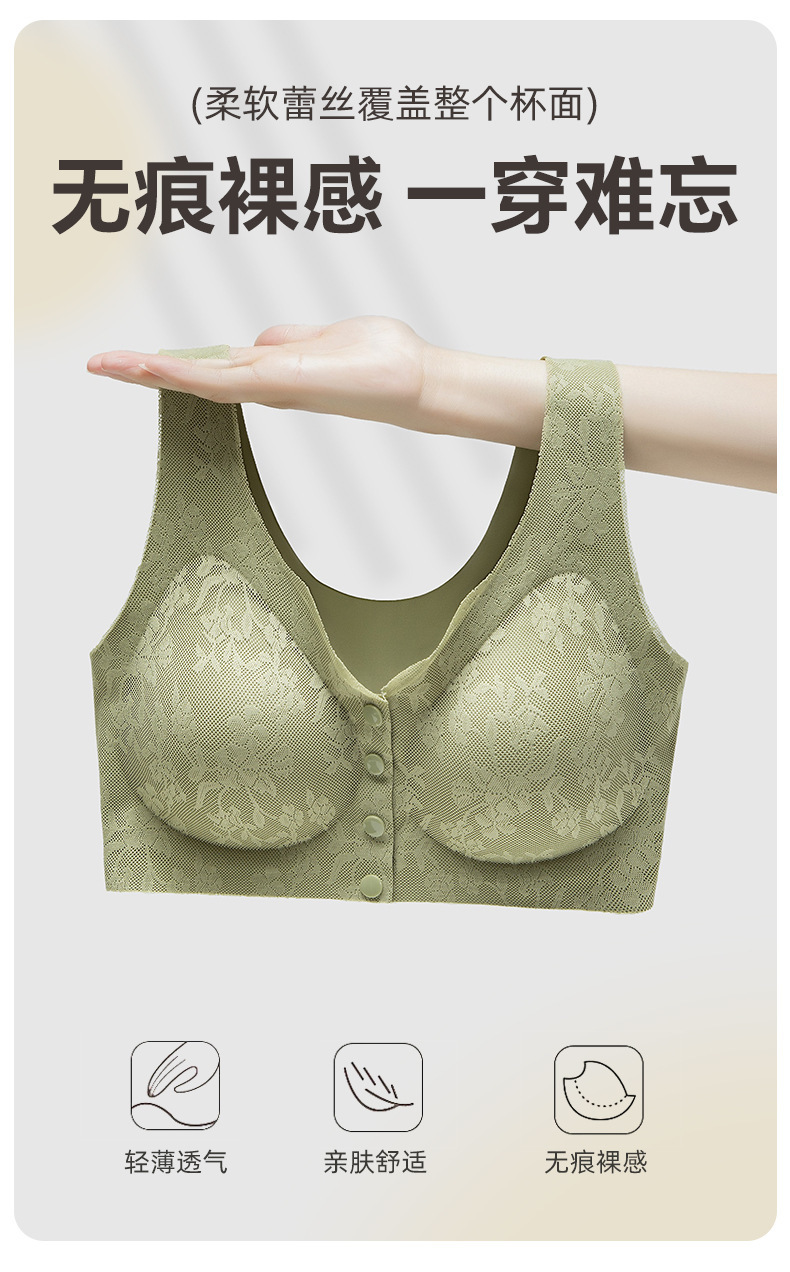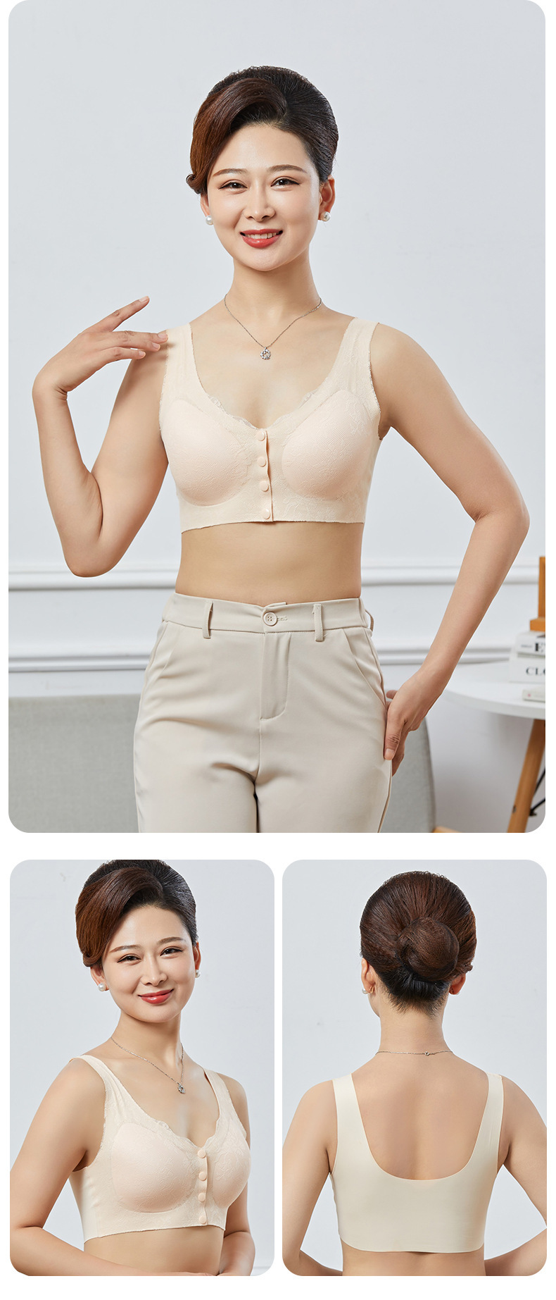 원피스 프론트 버클 어머니 속옷 원활한 뷰티 백 플러스 사이즈 브라 무선 수집 레이스 풀 컵 브래지어스토어 가기