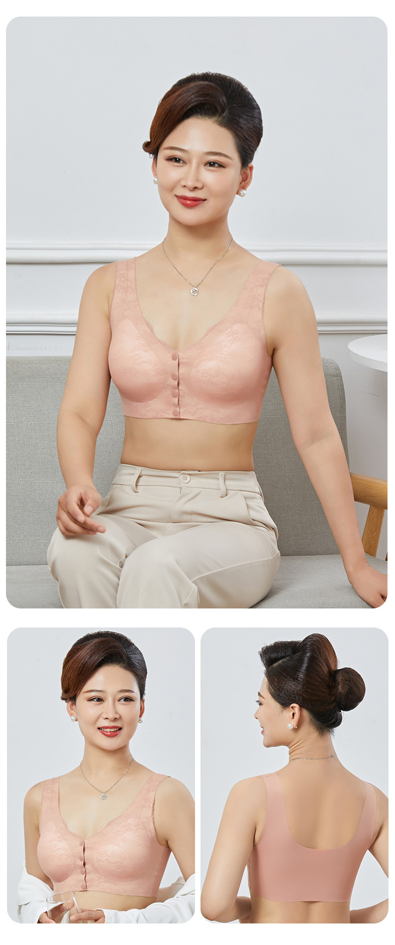 원피스 프론트 버클 어머니 속옷 원활한 뷰티 백 플러스 사이즈 브라 무선 수집 레이스 풀 컵 브래지어