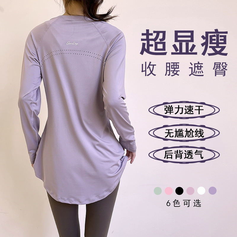 봄과 여름 운동복 긴 긴 소매 여성용 엉덩이 커버 슬림 통기성 요가 하이 퀄리티 피트니스 티셔츠 야외 탑