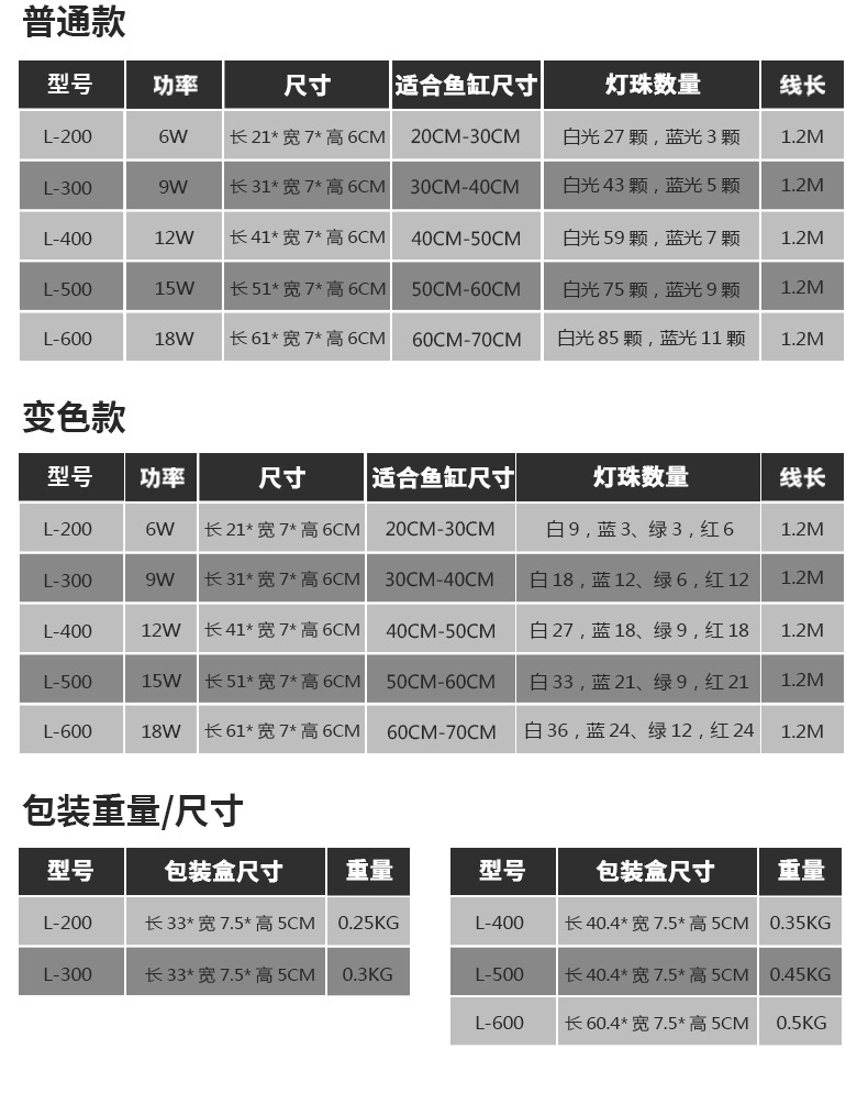 • 6 행 L-600 18W 3 섹션 색상 변경