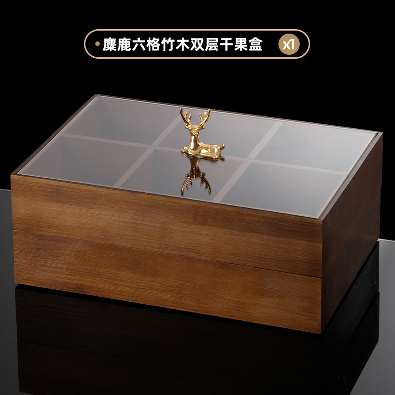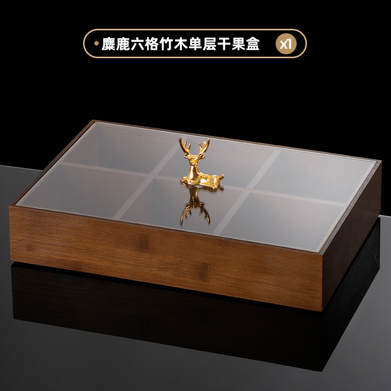 • 엘크 6 그리드 대나무 더블 레이어 말린 과일 상자