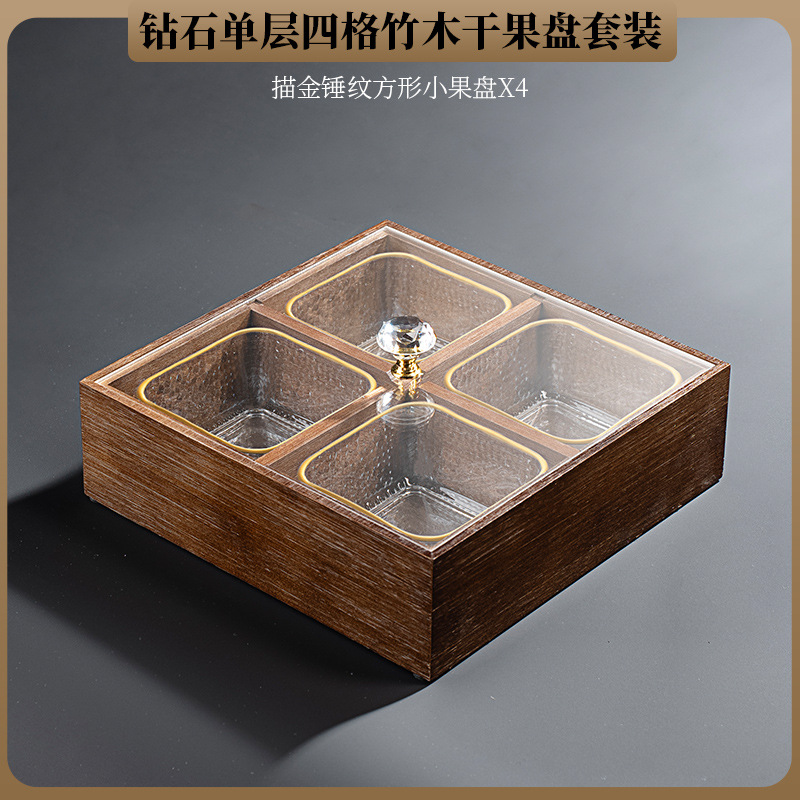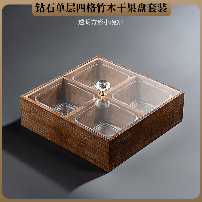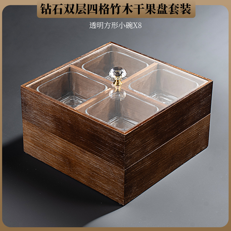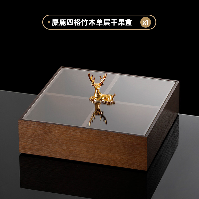 • 엘크 4 그리드 대나무 더블 레이어 말린 과일 상자