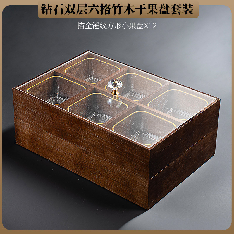 • 6 그리드 더블 레이어 말린 과일 상자 투명 망치질 그릇 12