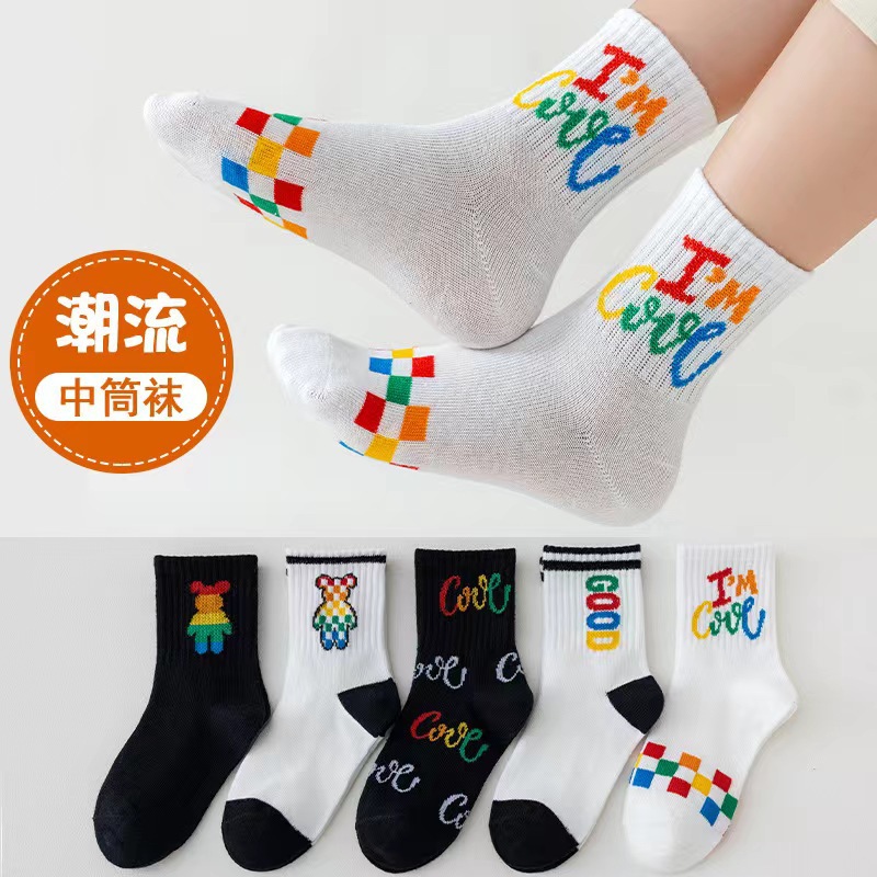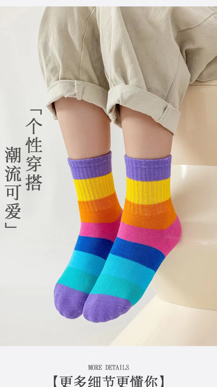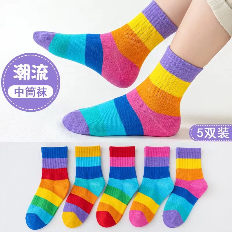 어린이 양말 가을과 겨울 새로운 한국 스타일 베스트셀러 소년 소녀 무지개 공주 줄무늬 양말 큰 어린이 중간 송아지 길이 양말 도매