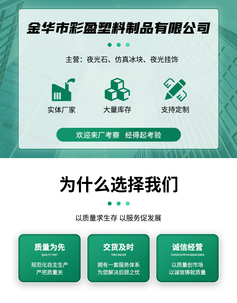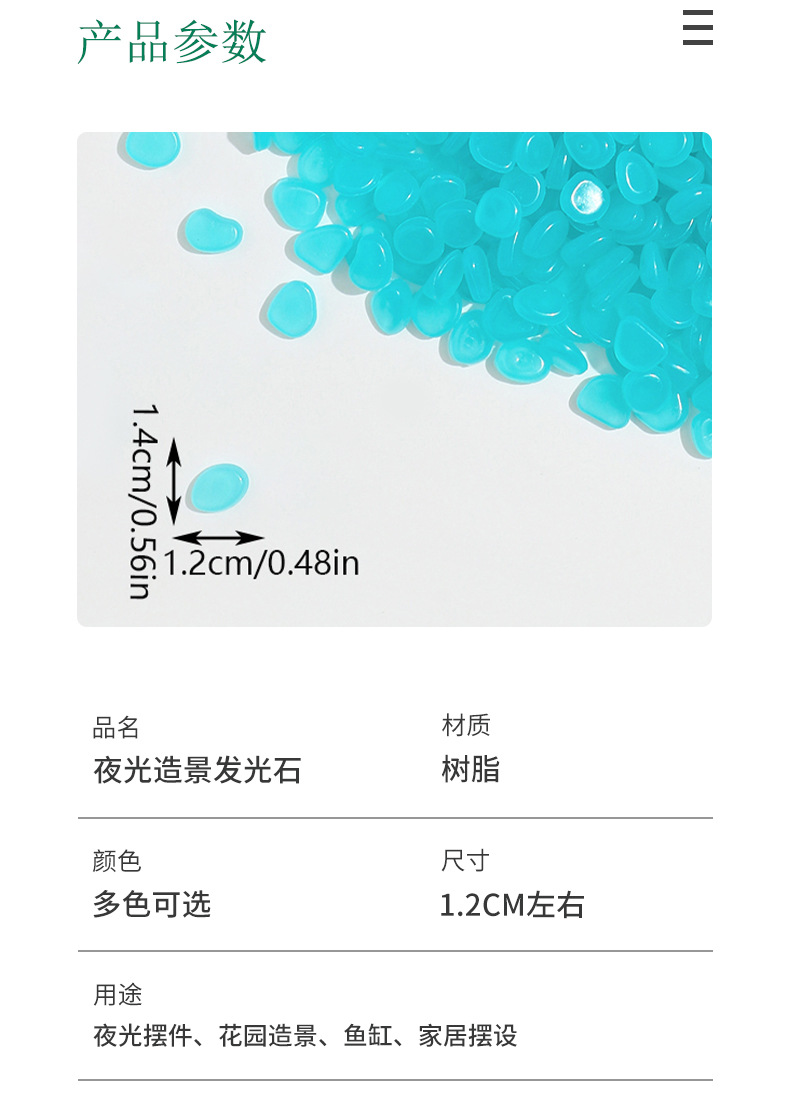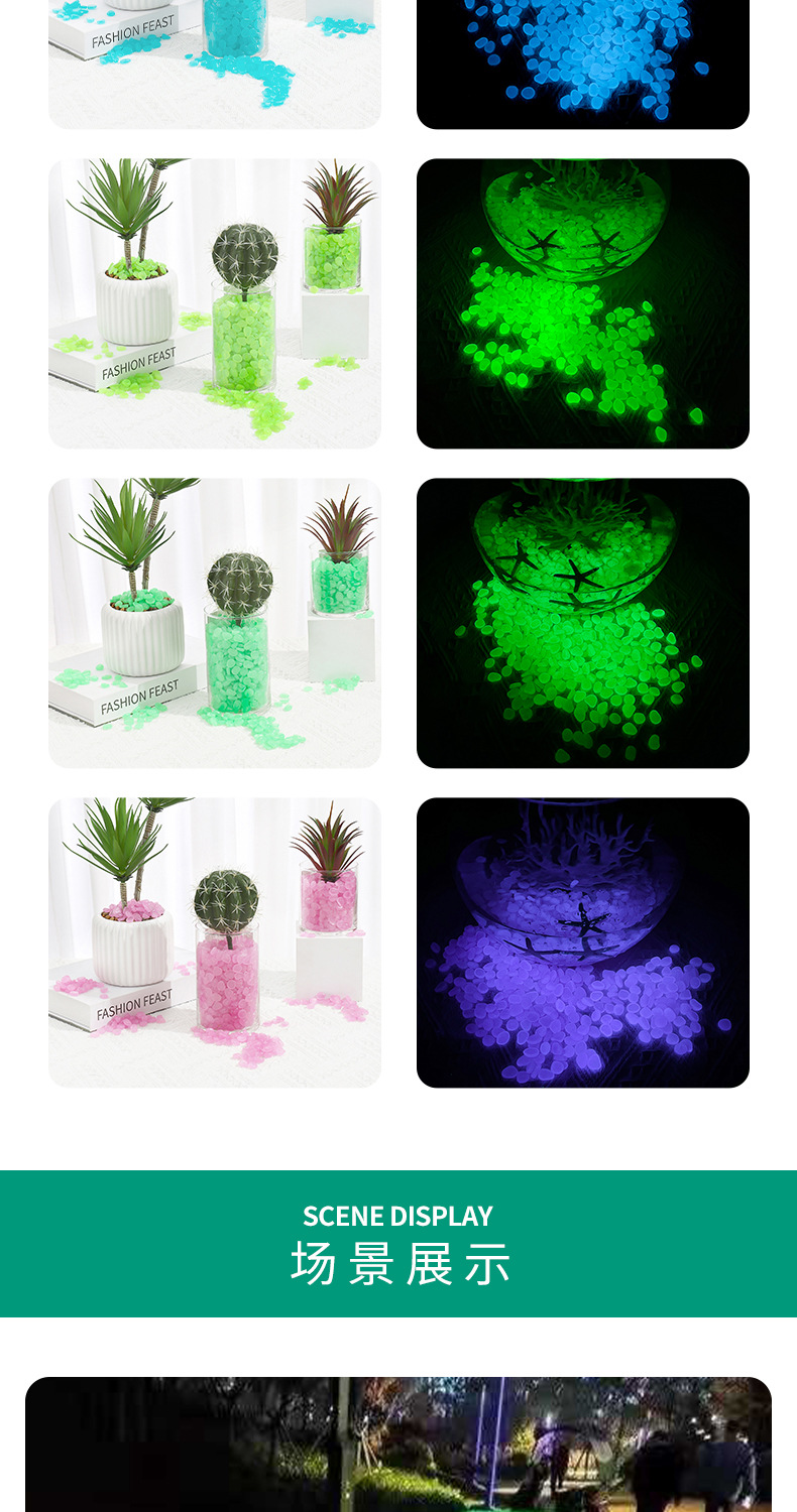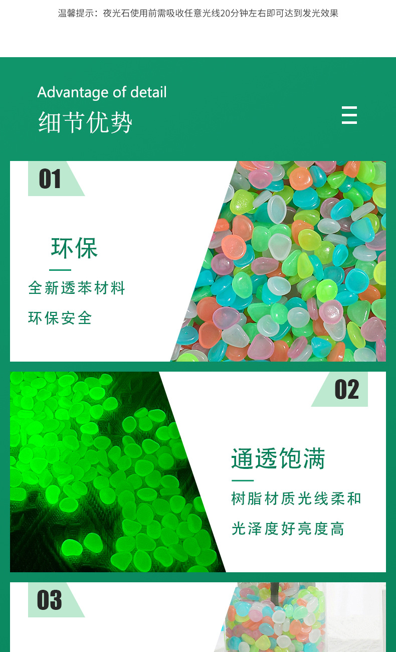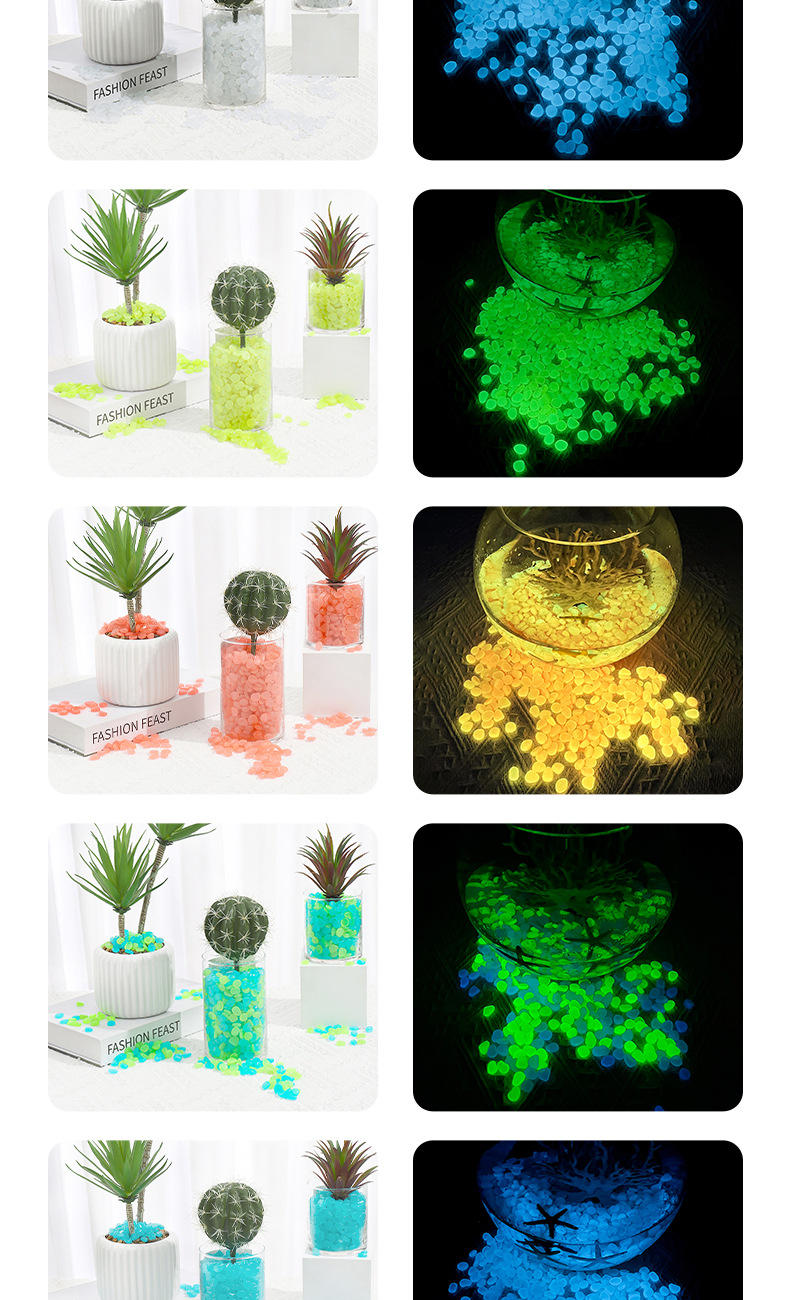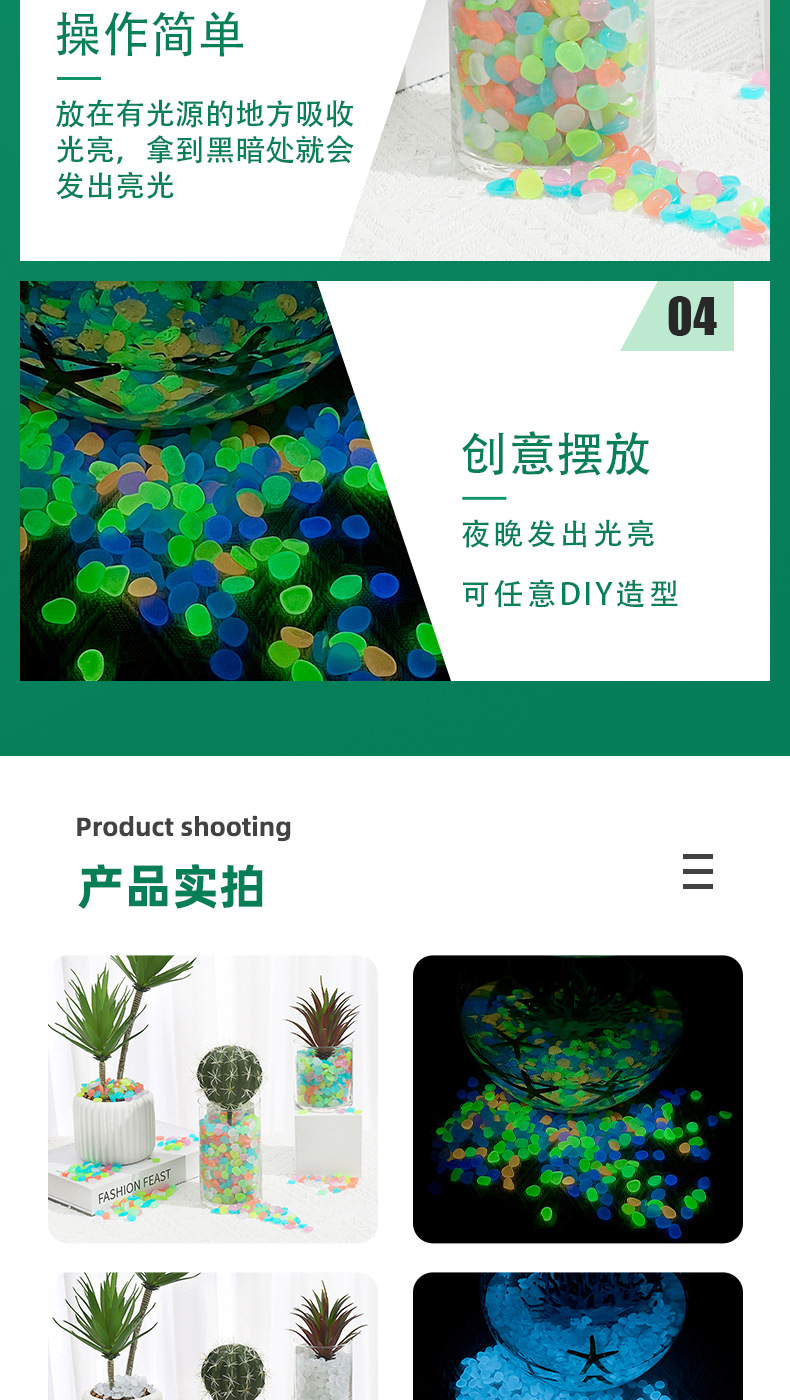 温馨提醒:很多客户以为夜光石是白天让它一直晒太阳,然后到了晚上就会一直发光!可别这样以为啊,所谓的夜光并不是说一定是晚上才亮,白天它照样也能亮,但是在暗处,光源很少的环境下夜光石也能显现出的它的夜光效果,当然越黑效果越好!只要让它们吸收到光源(阳光,灯光,户外自然光线下),但环境一定得有明暗对比的哦!!然后随着时间的推移,夜光效果会渐渐消退下去,夜光都是短暂的,可不是长久的哦,但可以反复吸光反复亮。当然之前吸收光线越久夜光持续也会相对久点。