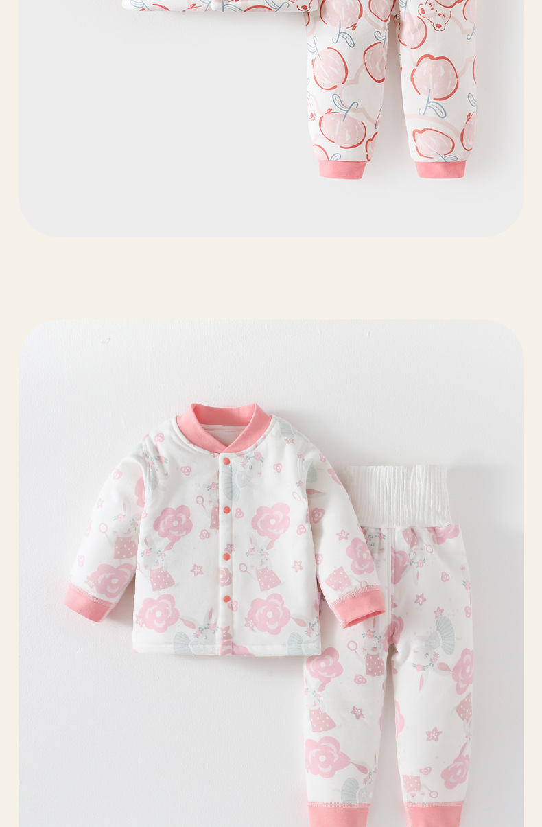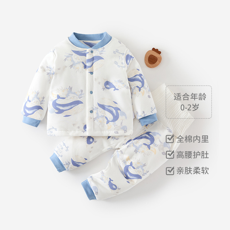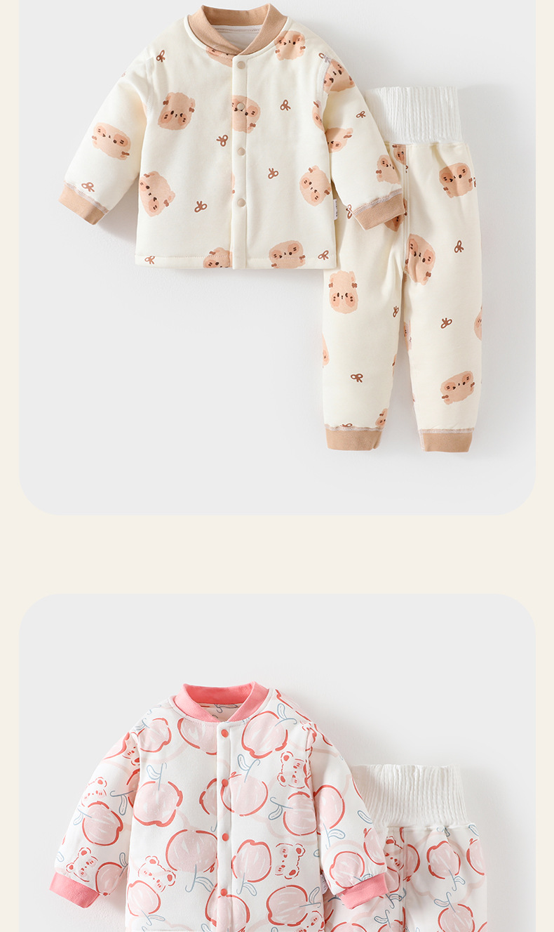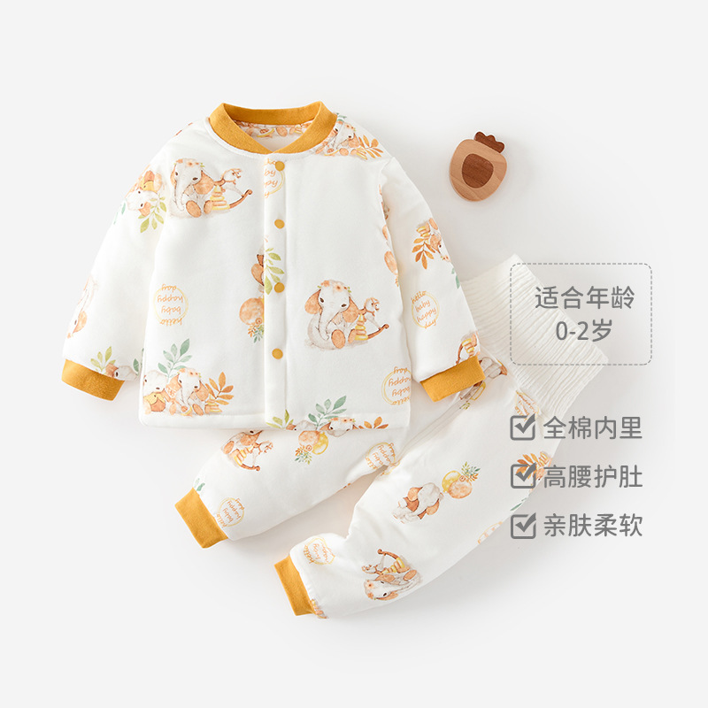 아기 따뜻한 세트 가을과 겨울 소년 소녀 가을 옷 긴 소매 높은 허리 배 보호 퀼트 겨울 옷스토어 가기