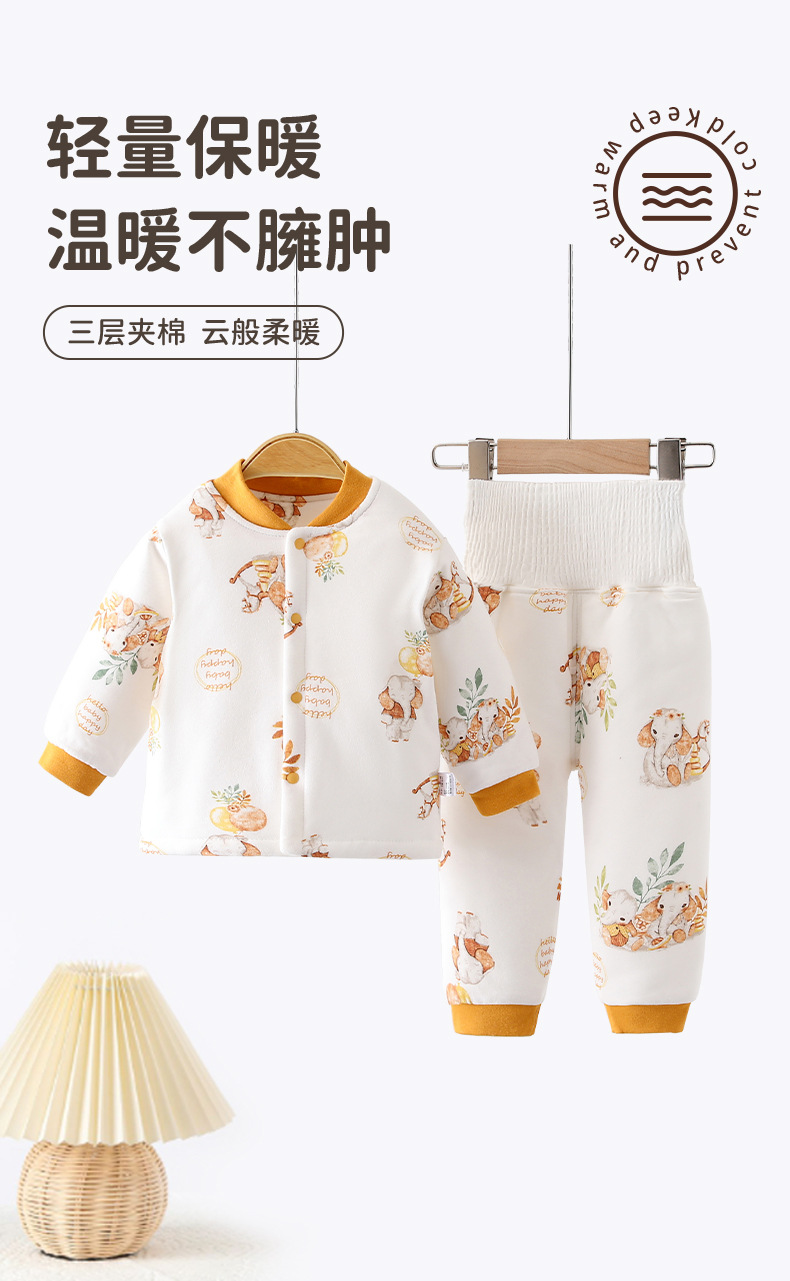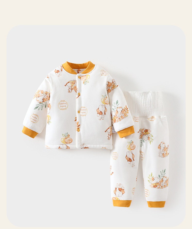아기 따뜻한 세트 가을과 겨울 소년 소녀 가을 옷 긴 소매 높은 허리 배 보호 퀼트 겨울 옷