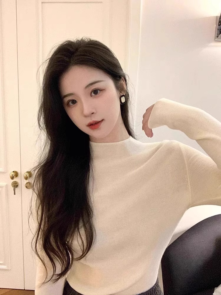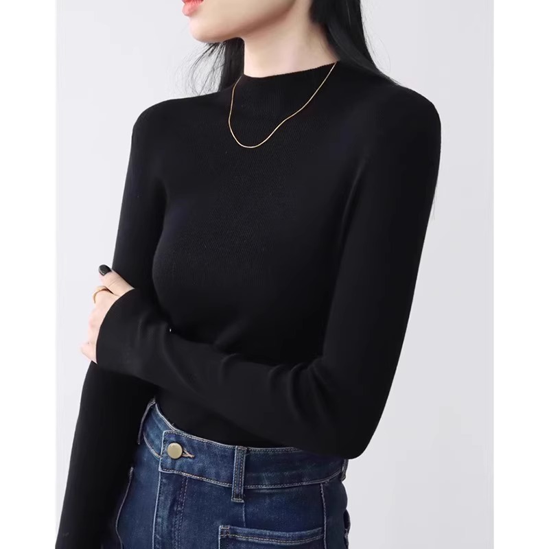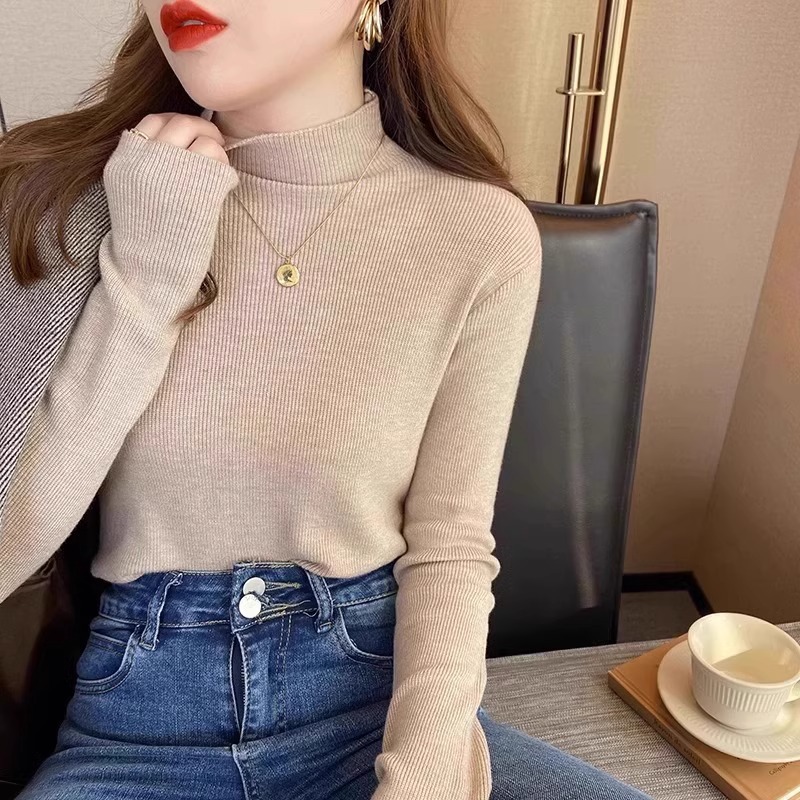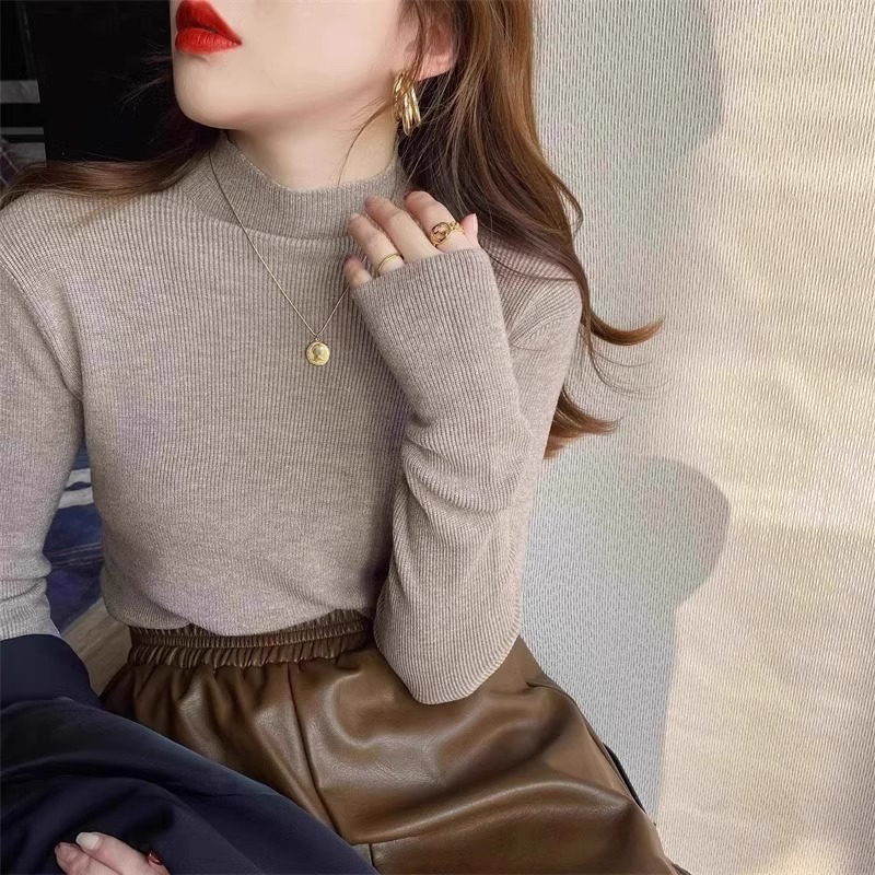 프랑스 스타일 복고풍 녹색 반 터틀넥 니트 바닥 셔츠 여성의 초가을 부드러운 찹쌀 내부 매칭 오버 코트 타이트 슬리밍 탑