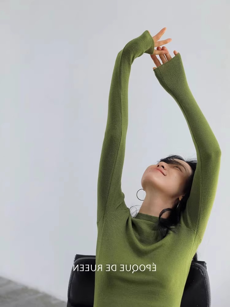 프랑스 스타일 복고풍 녹색 반 터틀넥 니트 바닥 셔츠 여성의 초가을 부드러운 찹쌀 내부 매칭 오버 코트 타이트 슬리밍 탑스토어 가기