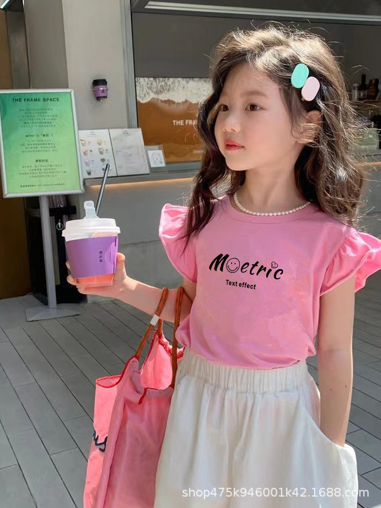 국경 간 소녀의 서양식 면화 작은 비행 소매 정상 여름 얇은 둥근 목 티셔츠 어린이 아기 땀 흡수성 바닥 셔츠스토어 가기