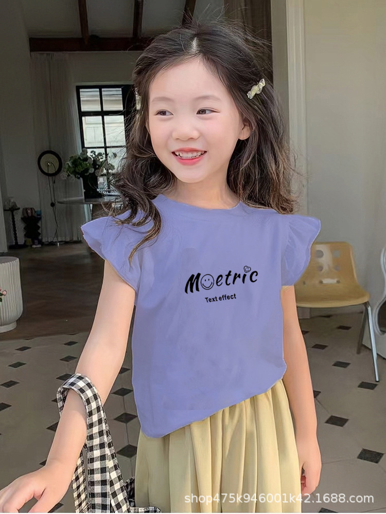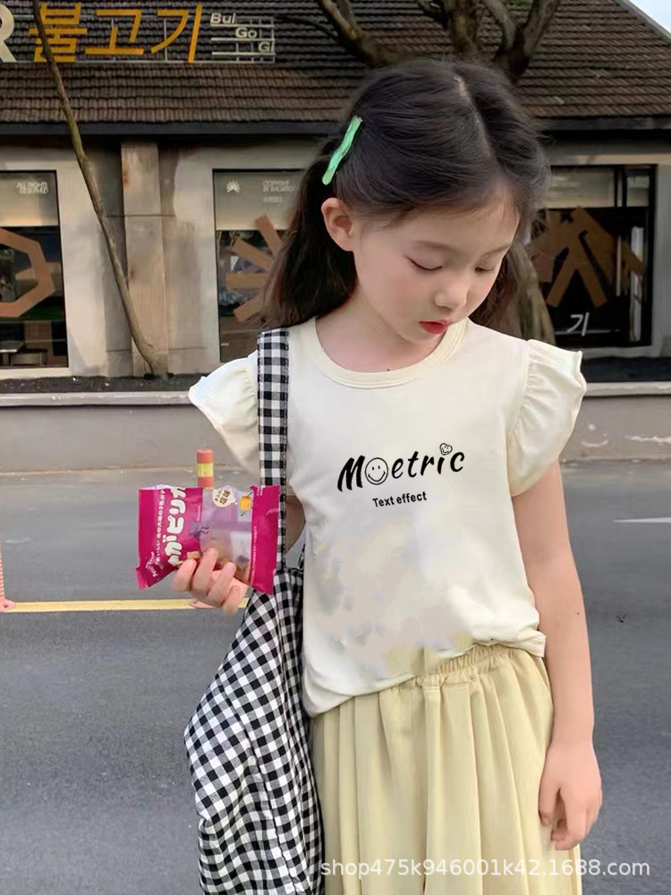 국경 간 소녀의 서양식 면화 작은 비행 소매 정상 여름 얇은 둥근 목 티셔츠 어린이 아기 땀 흡수성 바닥 셔츠
