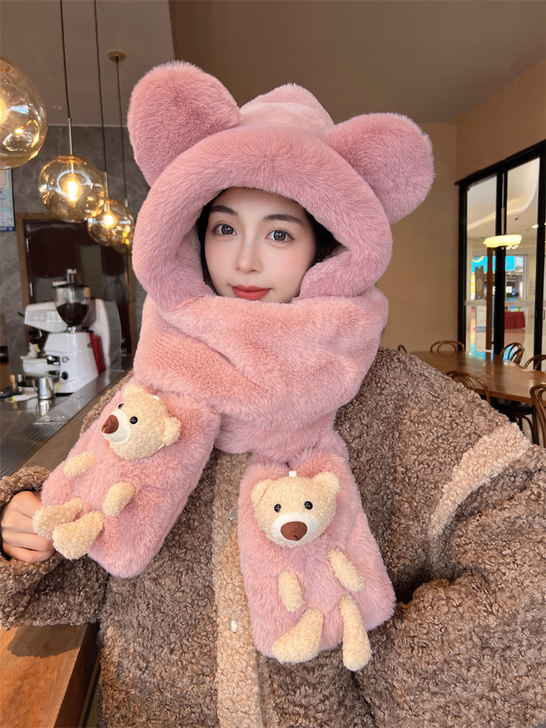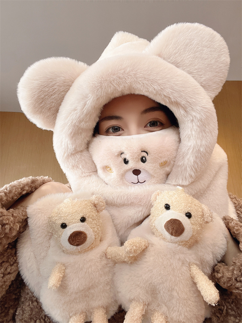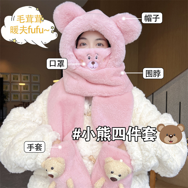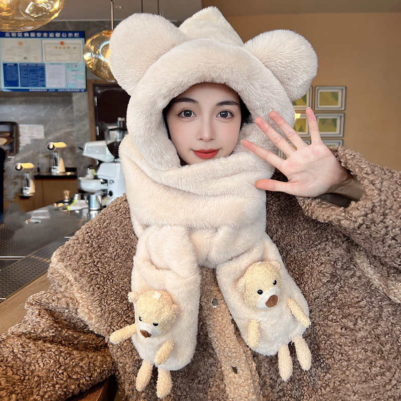 올 매치 베어 모자 스카프 여성의 2024 겨울 새 겨울 장갑 스카프 소녀 사이클링 3 피스 세트스토어 가기