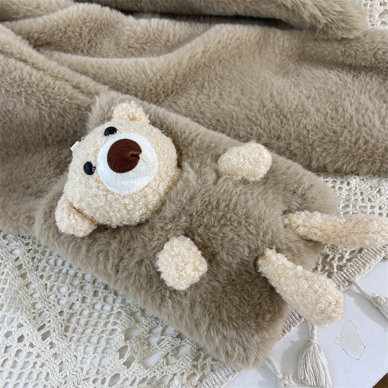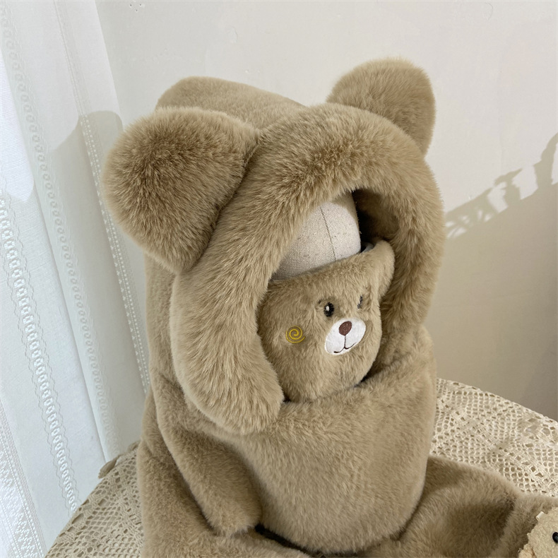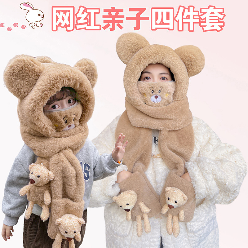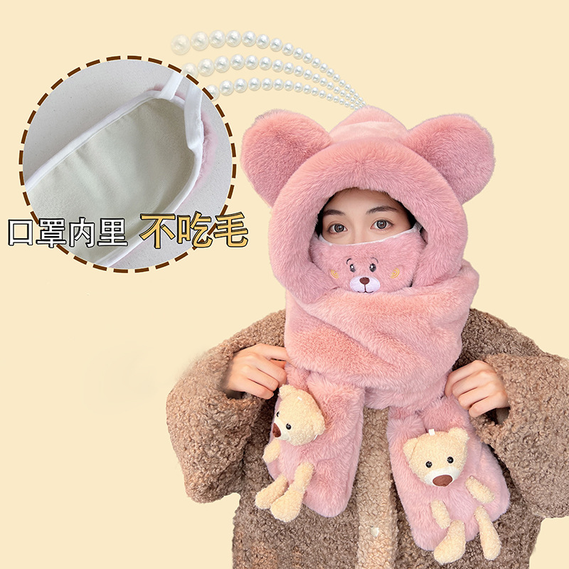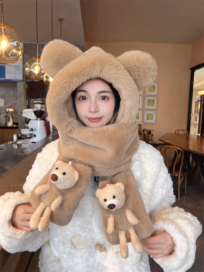 올 매치 베어 모자 스카프 여성의 2024 겨울 새 겨울 장갑 스카프 소녀 사이클링 3 피스 세트스토어 가기