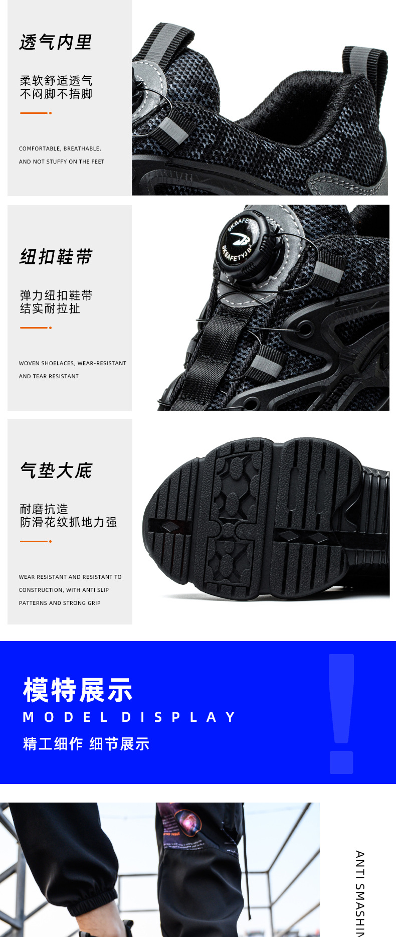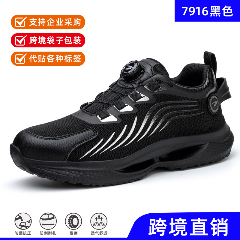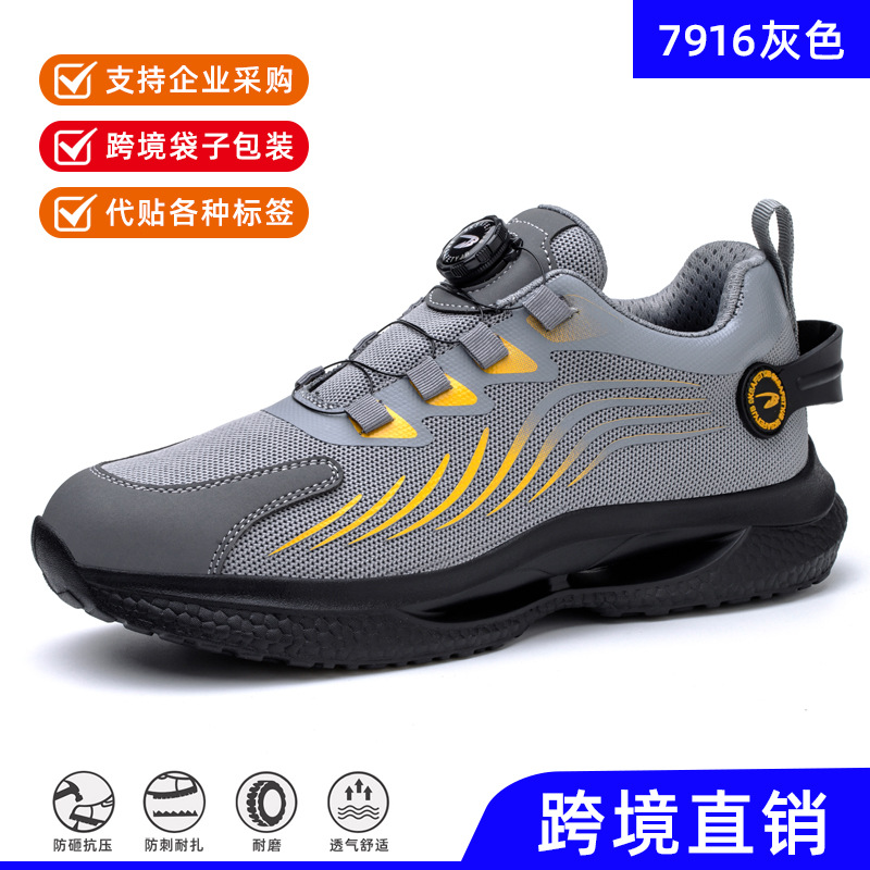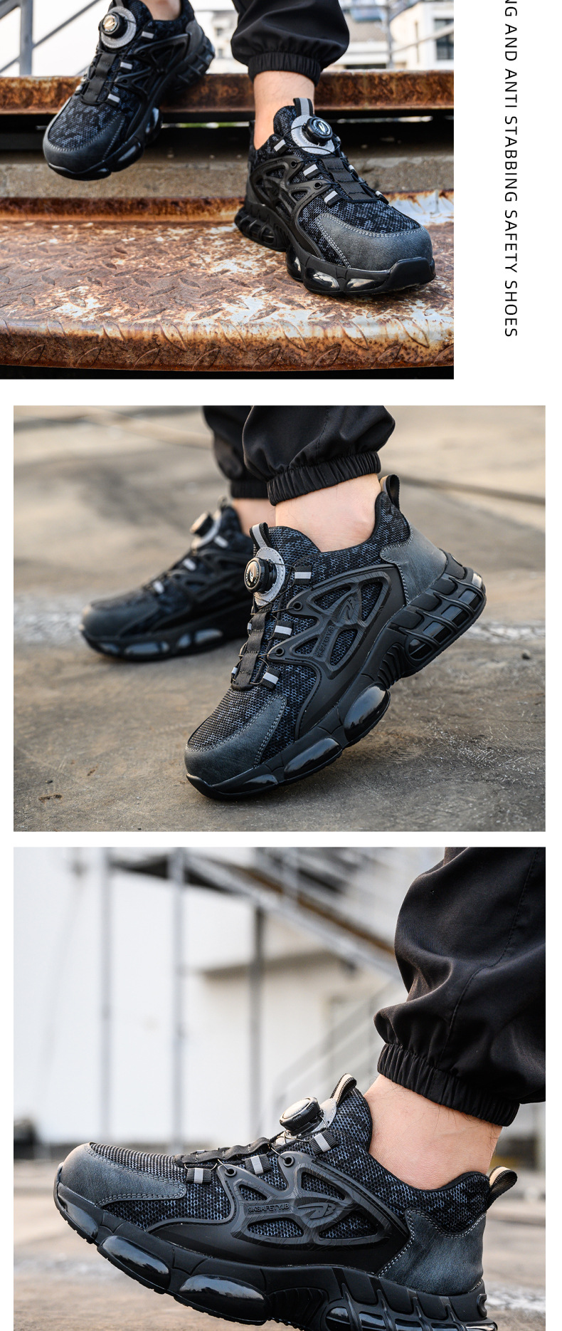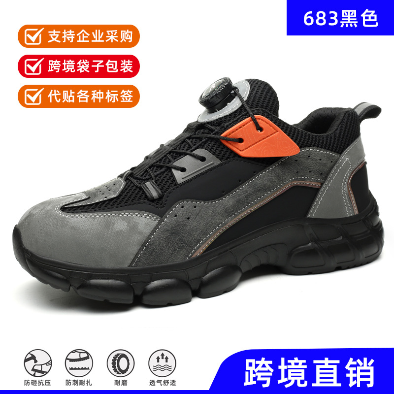국경 간 패션 새로운 회전 버튼 노동 보호 신발 남성용 스매싱 방지 펑크 안전 신발 미끄럼 방지 내마모성 작업화