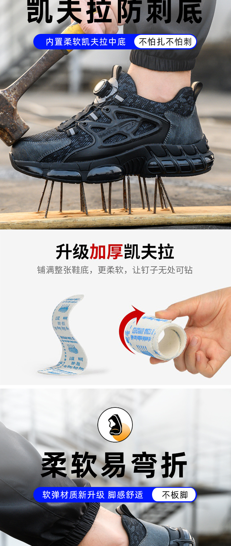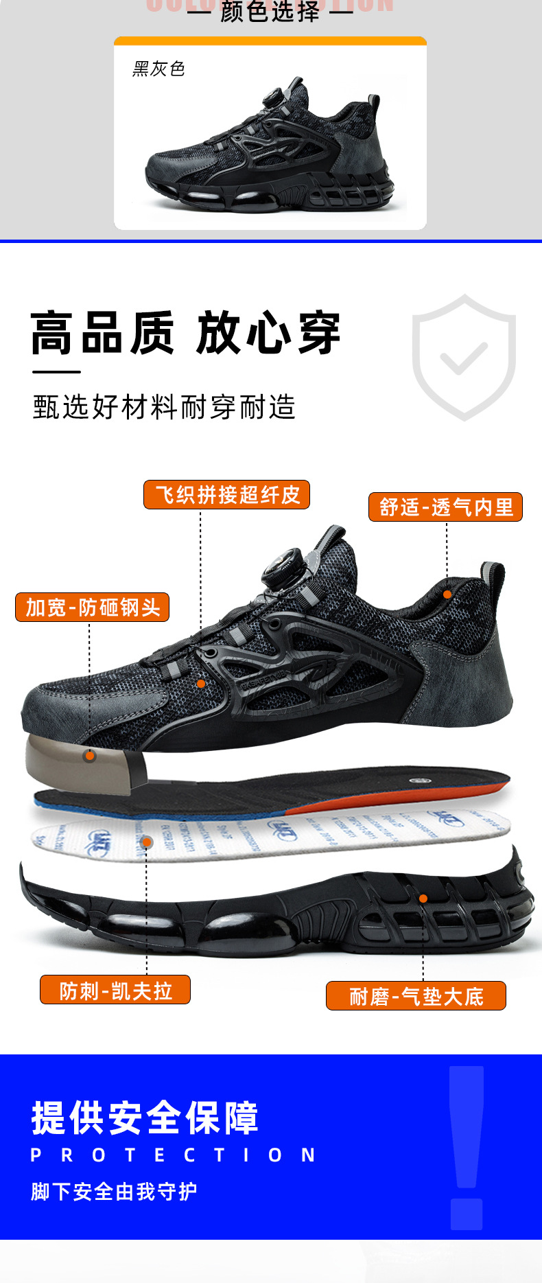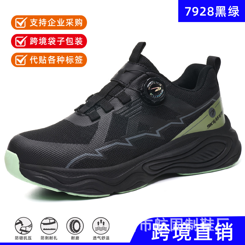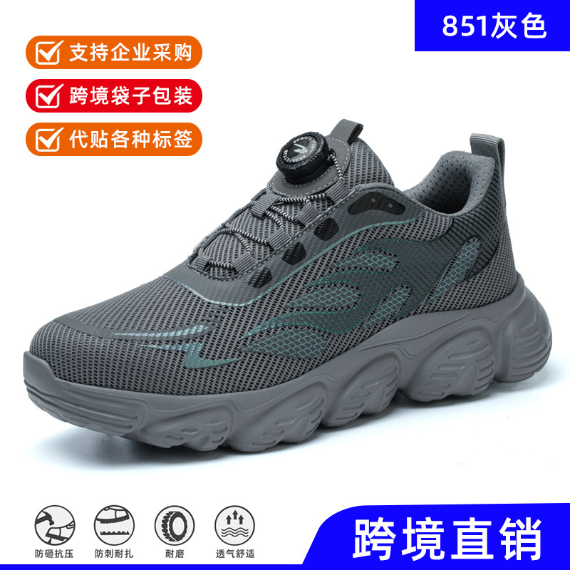국경 간 패션 새로운 회전 버튼 노동 보호 신발 남성용 스매싱 방지 펑크 안전 신발 미끄럼 방지 내마모성 작업화