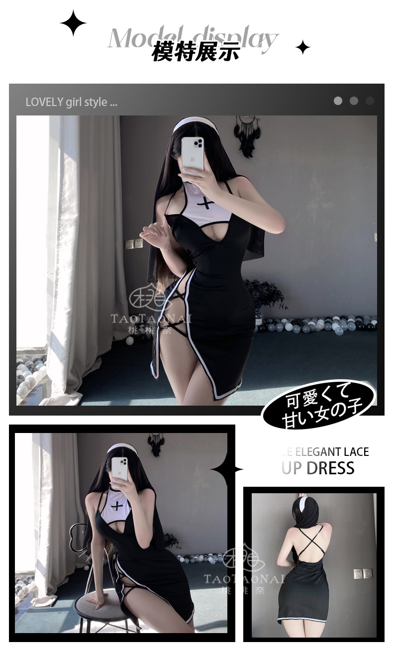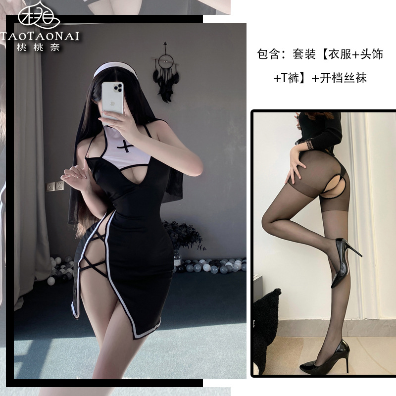 원래 섹시한 란제리 매혹적인 수녀 귀여운 유니폼 세트 뜨거운 순수한 욕망 파자마 원피스 배달스토어 가기