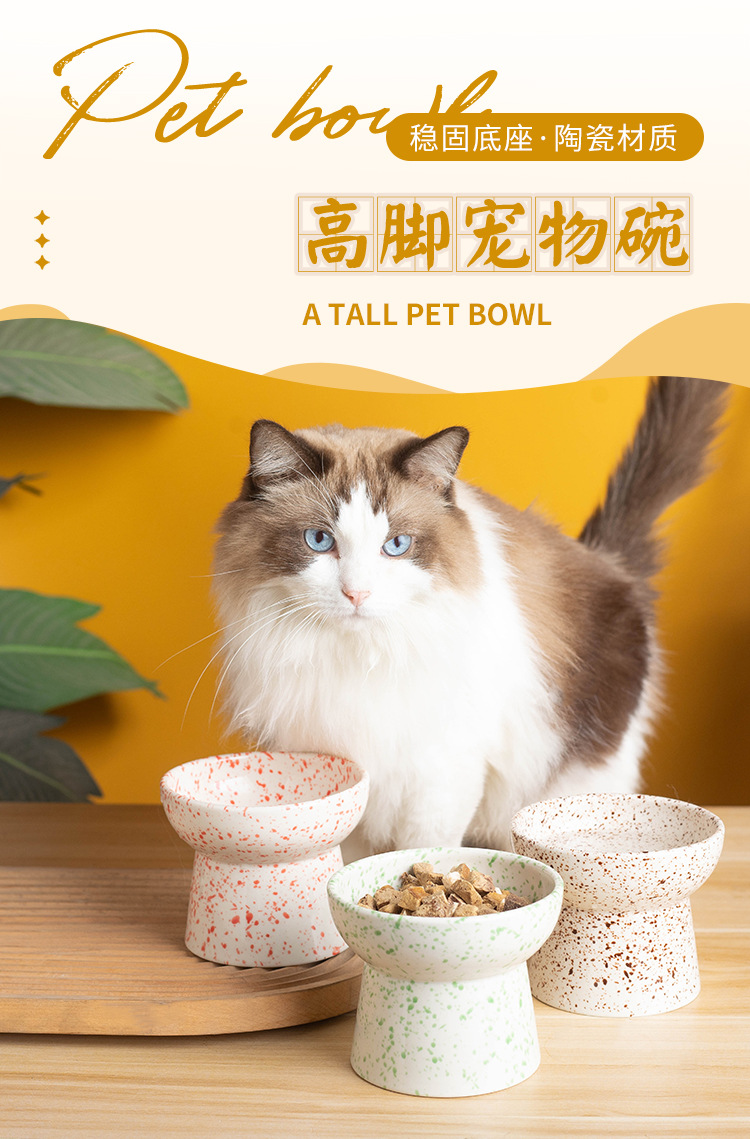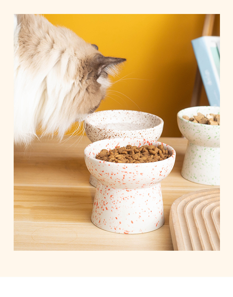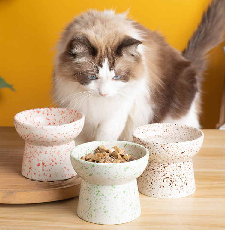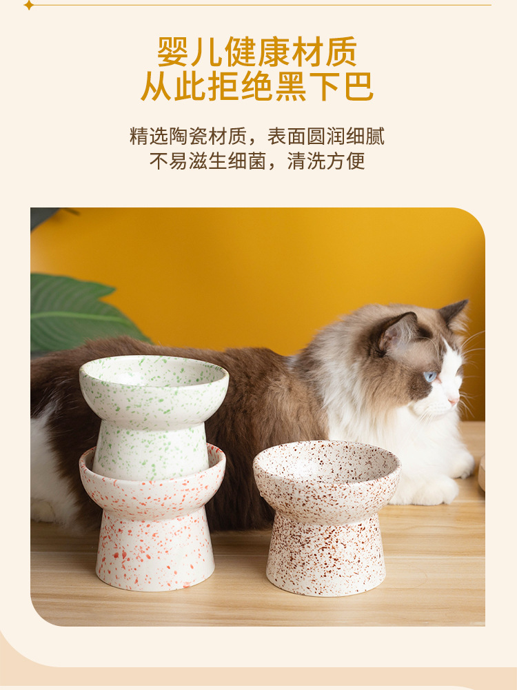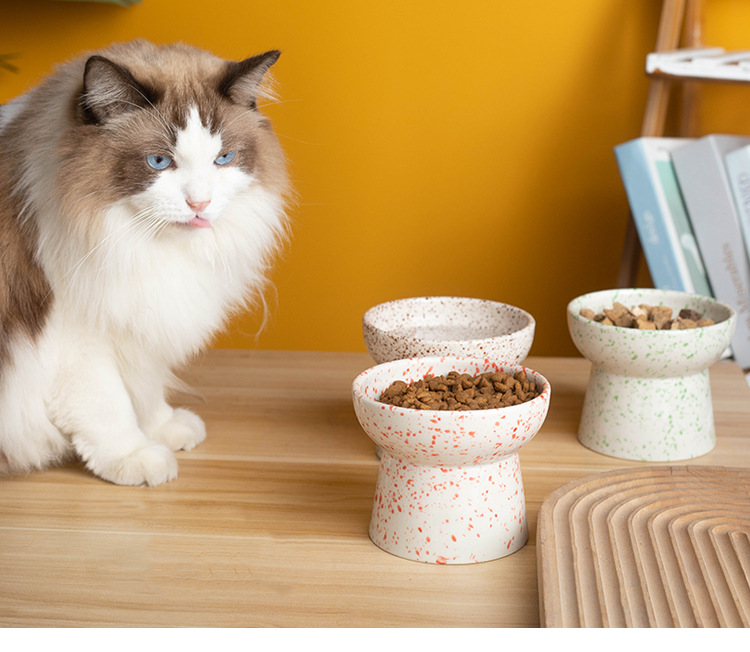 높은 발 고양이 그릇 세라믹 애완 동물 그릇 목 보호 평평한 입 그릇 고양이 그릇 고양이 음식 그릇 음식 그릇 고양이 먹이 그릇 공장 도매