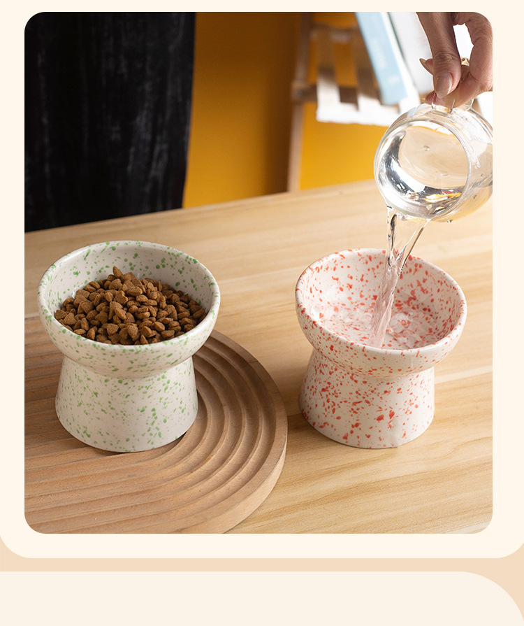 높은 발 고양이 그릇 세라믹 애완 동물 그릇 목 보호 평평한 입 그릇 고양이 그릇 고양이 음식 그릇 음식 그릇 고양이 먹이 그릇 공장 도매스토어 가기
