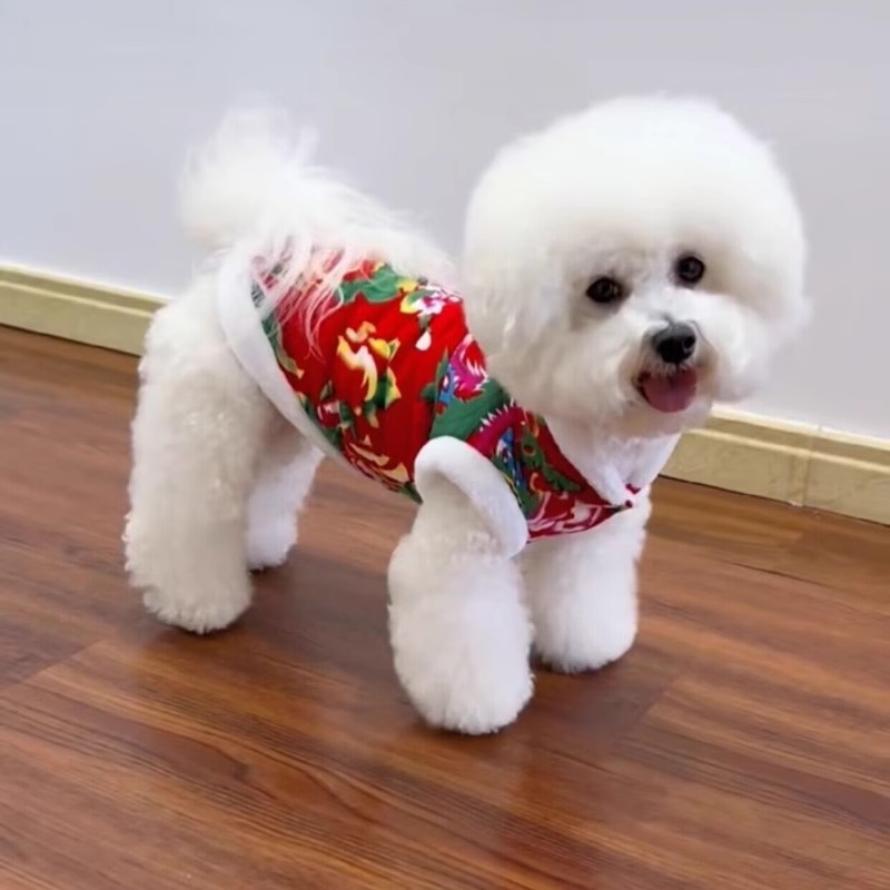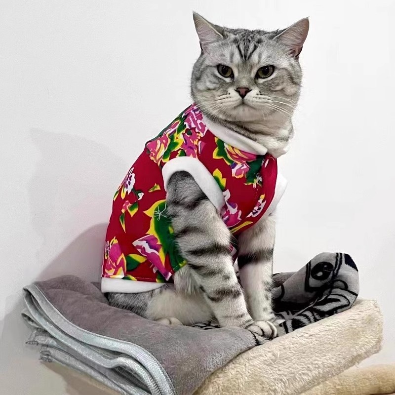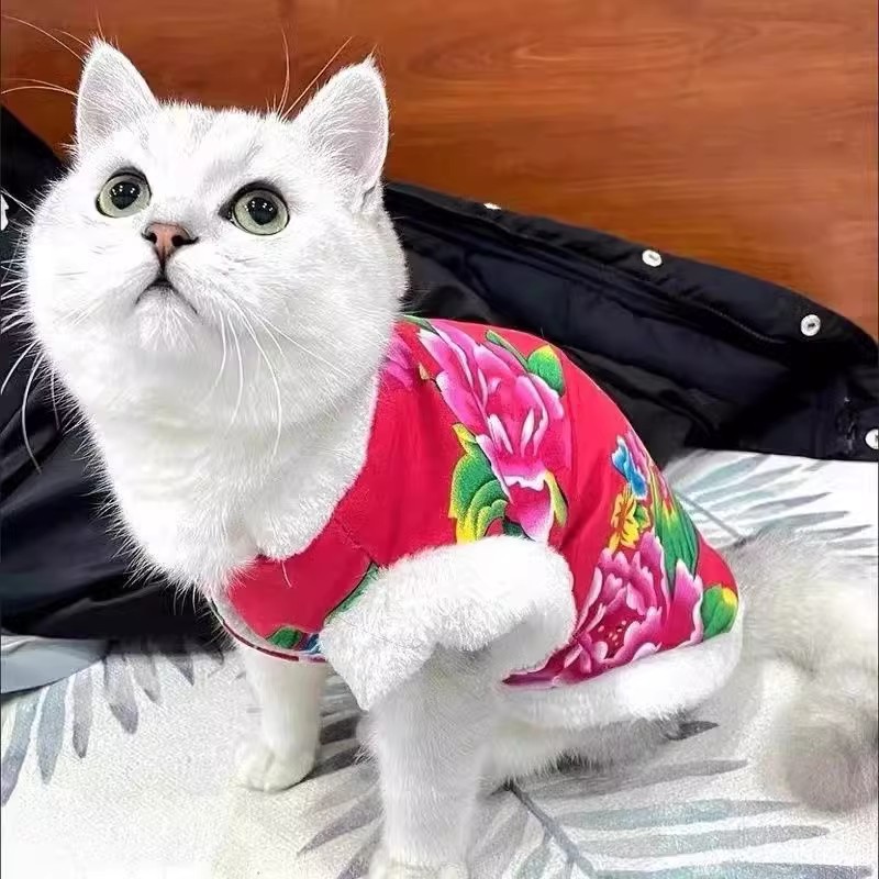 고양이 옷 겨울 새해 옷 테디 동북 큰 꽃 코트 Ying 짧은 실버 점진적 키티 애완 동물 강아지 옷
