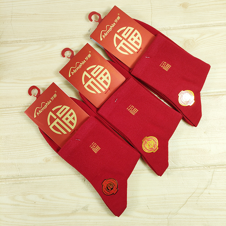 Mengna 출생 년 빨간 양말 남성용 두꺼운 면 중간 종아리 길이 양말 가을과 겨울 붉은 축제 새해 캐주얼 양말스토어 가기