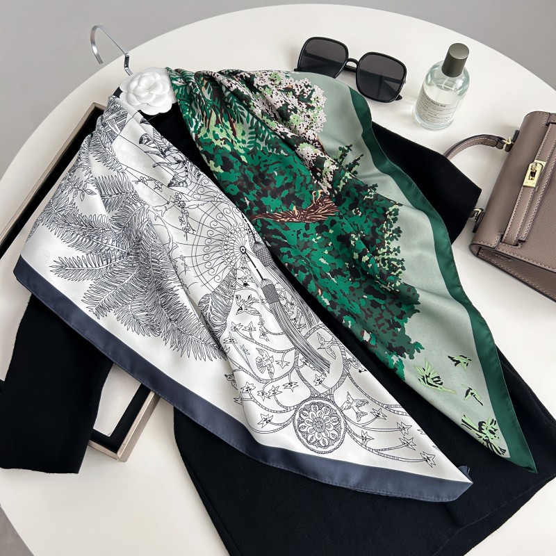 뜨거운 새로운 한국 스타일 Ins 스타일 빅 브랜드 인쇄 편지 하이 엔드 실크 같은 여성용 트윌 장식 여성 스카프