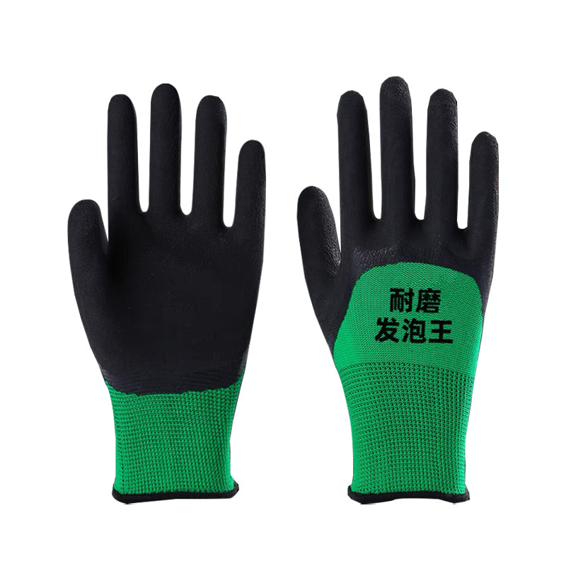 노동 보호 장갑 라텍스 폼 킹 장갑 내마모성 작업 고무 미끄럼 방지 통기성 두꺼운 남성용 접착제 교수형 장갑