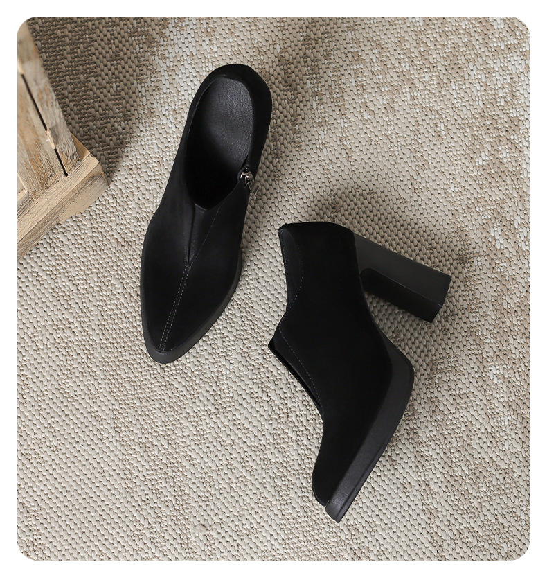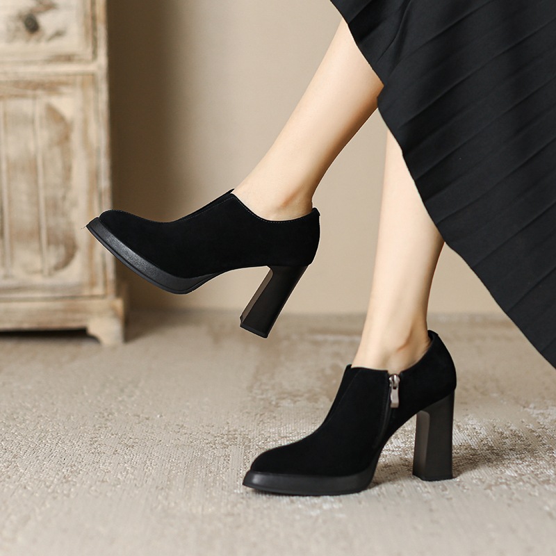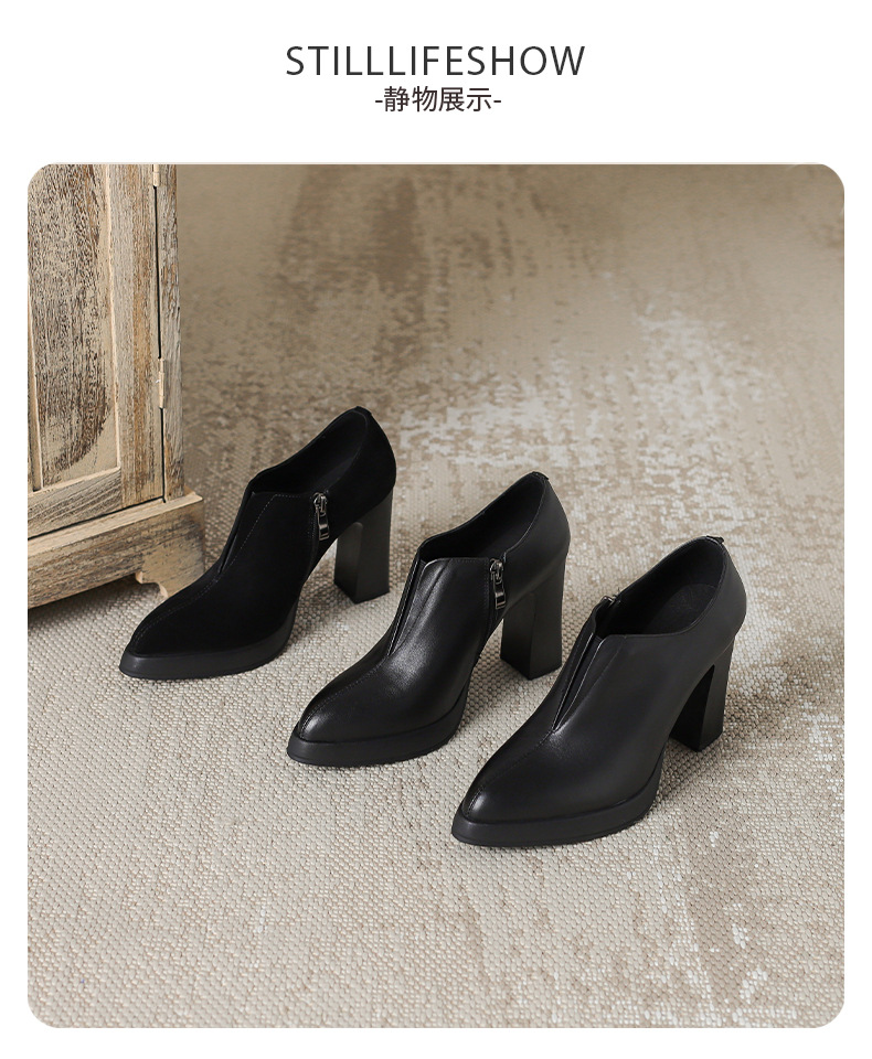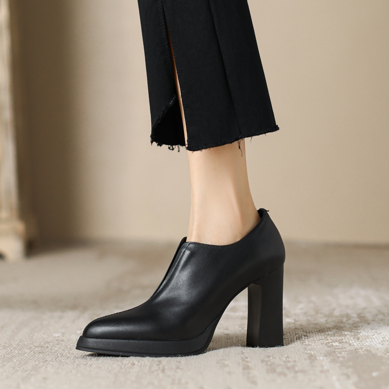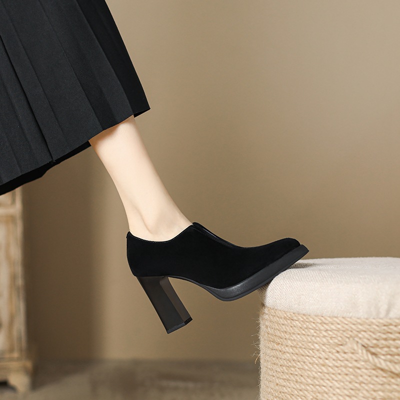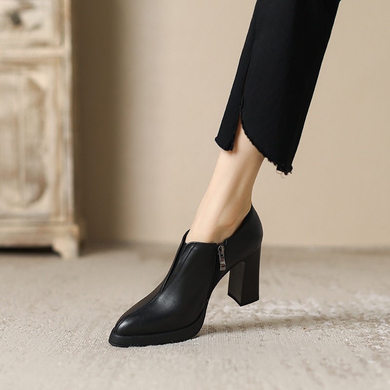 첫 번째 레이어 소 가죽 두꺼운 발 뒤꿈치 깊은 입 신발 여성 하이힐 가을과 겨울 새로운 여성 신발 간단한 통근 작은 가죽 신발스토어 가기