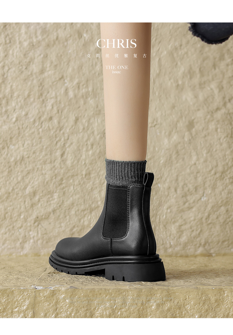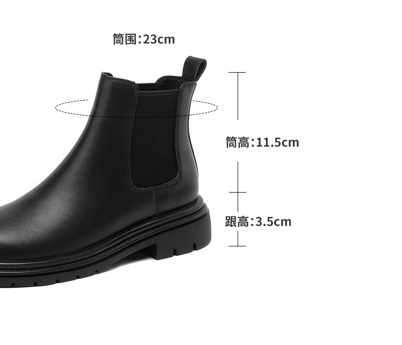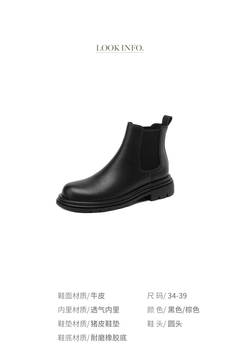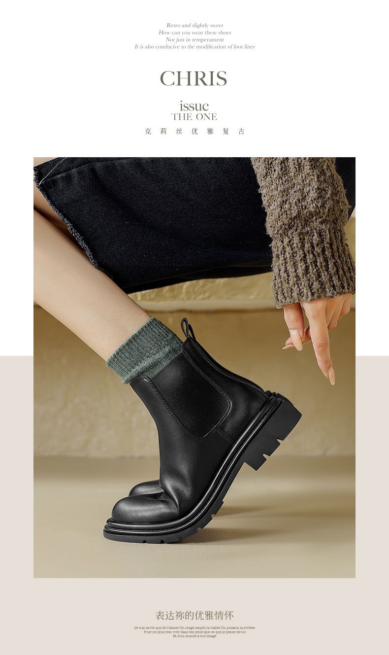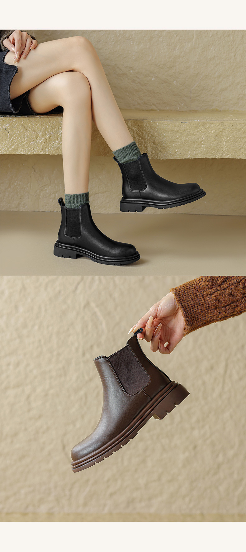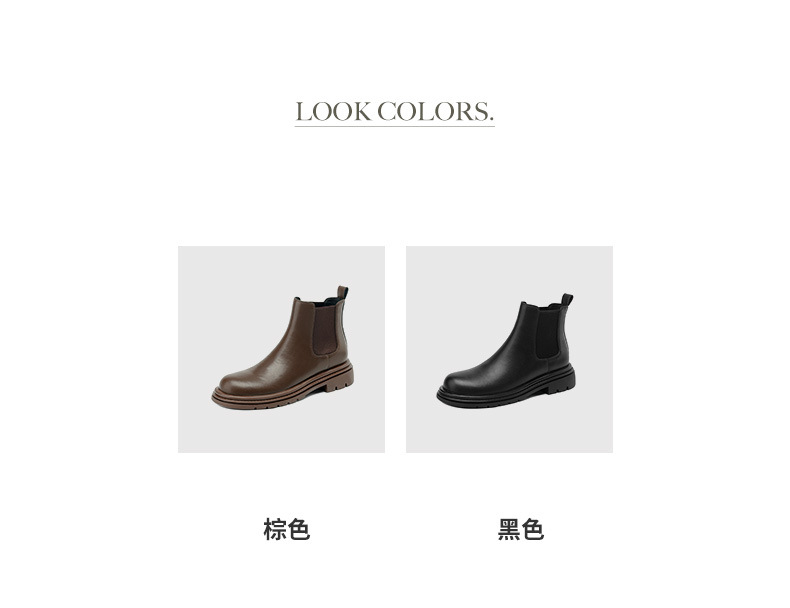 영국 소프트 가죽 다크 브라운 첼시 발목 부츠 여성의 두툼한 뒤꿈치 2023 가을과 겨울 뉴 소가죽 마틴 부츠 미드 힐 싱글 레이어 부츠