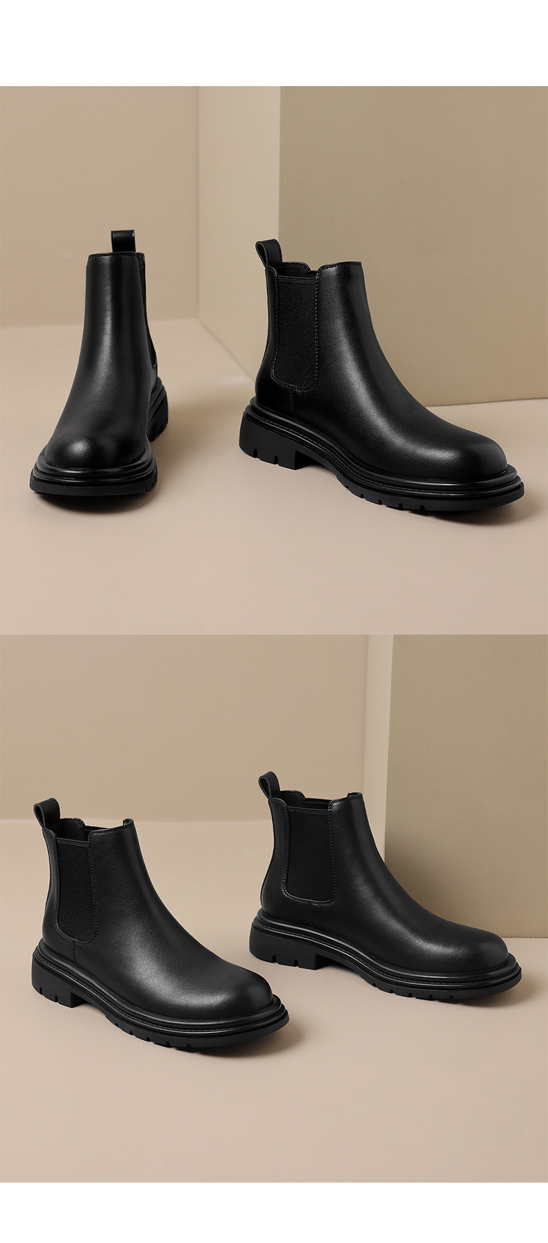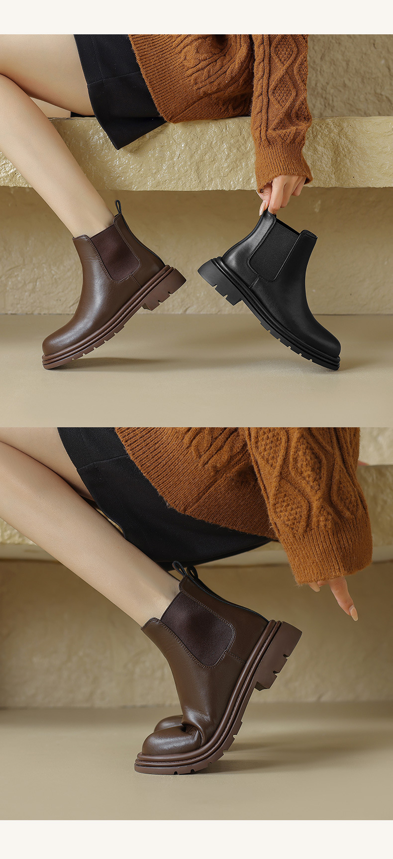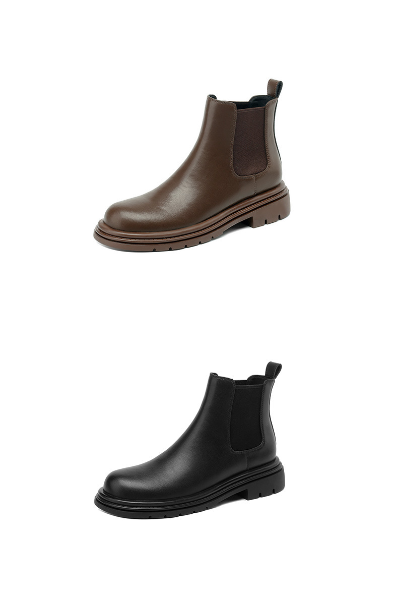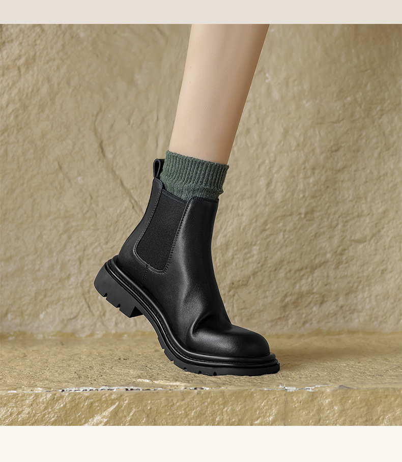 영국 소프트 가죽 다크 브라운 첼시 발목 부츠 여성의 두툼한 뒤꿈치 2023 가을과 겨울 뉴 소가죽 마틴 부츠 미드 힐 싱글 레이어 부츠