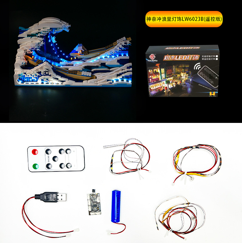 LP 빌딩 블록 조명 호환 레고 DK3003 가나가와 서핑 조립 빌딩 블록 원격 제어 조명 램프스토어 가기