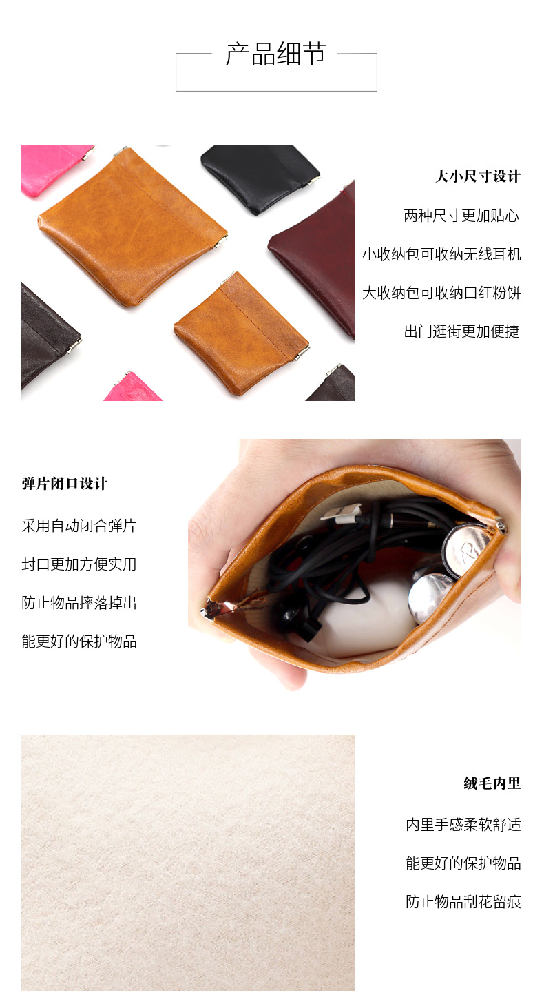 창의적인 자동 폐쇄 보관 가방, 휴대용 미니 화장품 가방, 휴대용 헤드폰 데이터 케이블 부품 보관 가방 PU스토어 가기