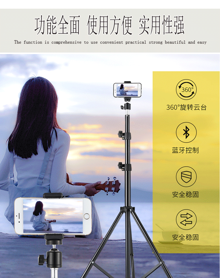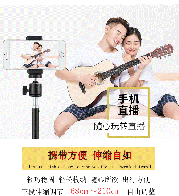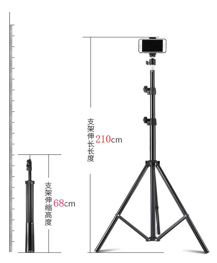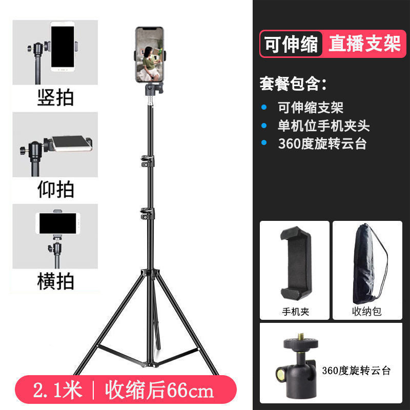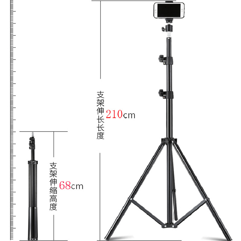 210 브래킷 휴대 전화 라이브 삼각대 채우기 빛 텔레스코픽 바닥 다기능 촬영 삼각대 야외 램프 홀더
