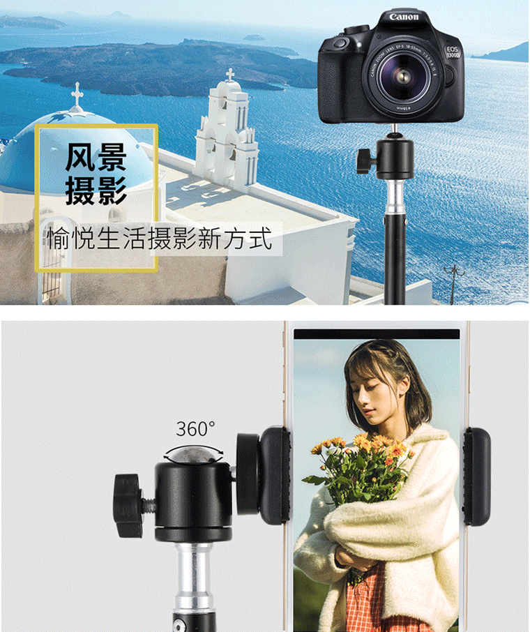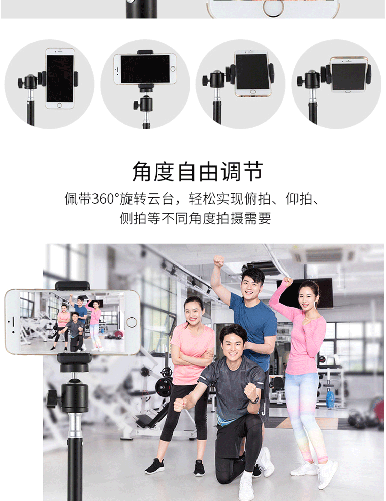 • 셀프 타이머가있는 210 독립형 위치 [브래킷 + 스토리지 백 + 작은 PTZ + 휴대 전화 클립 + 블루투스 리모컨]]