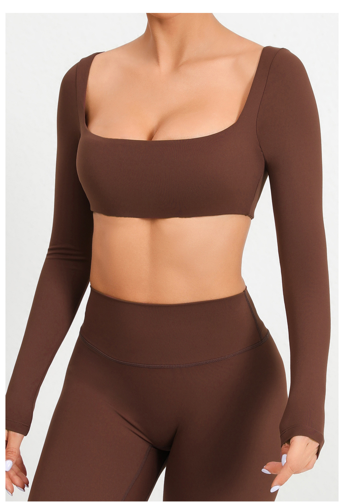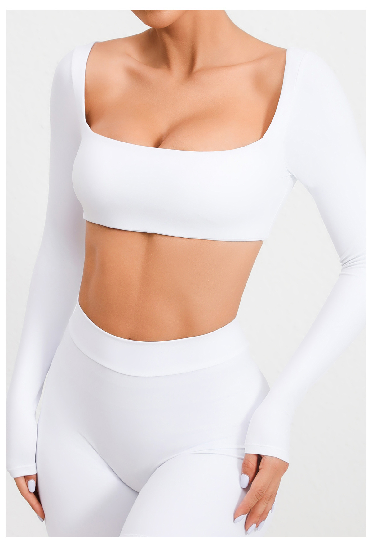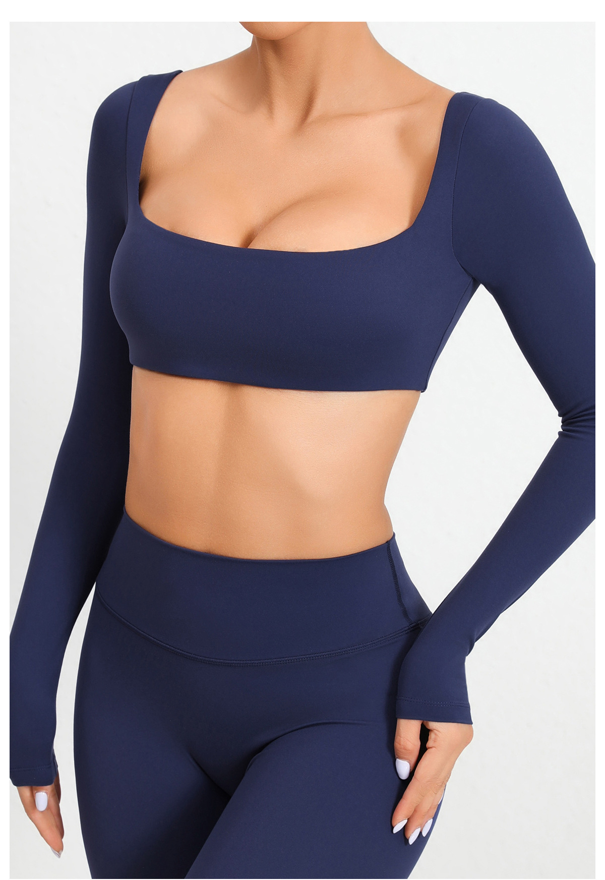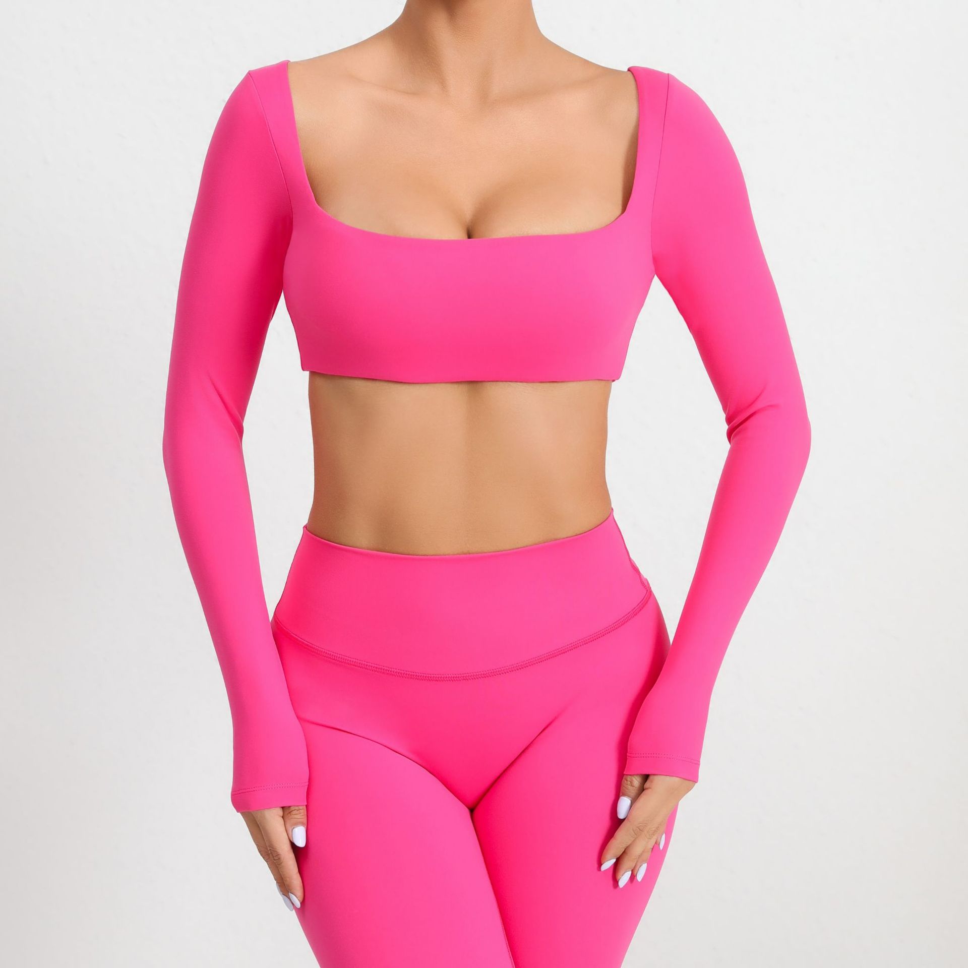 유럽과 미국의 목걸이 가슴 패드 긴팔 요가 의류 야외 달리기 피트니스 의류 빠른 건조 긴팔 티셔츠 스포츠 탑