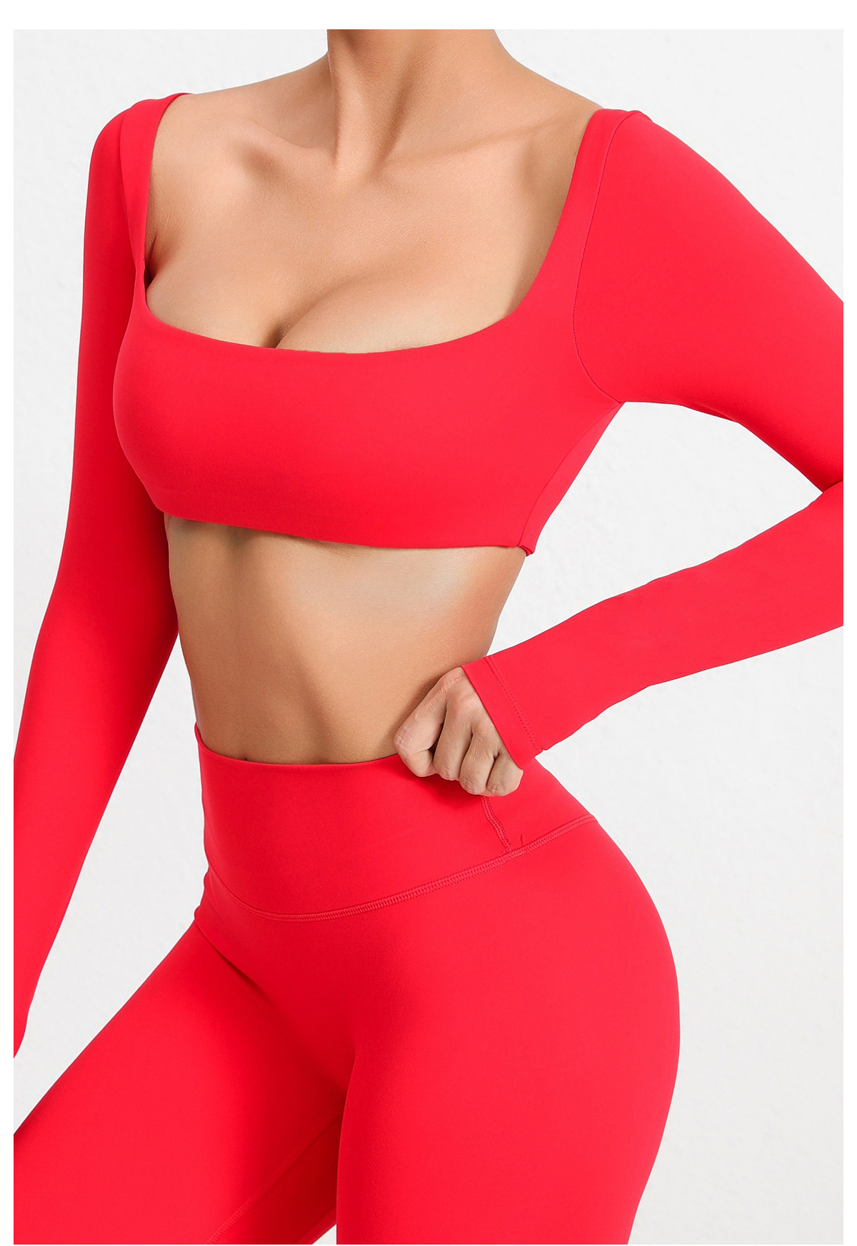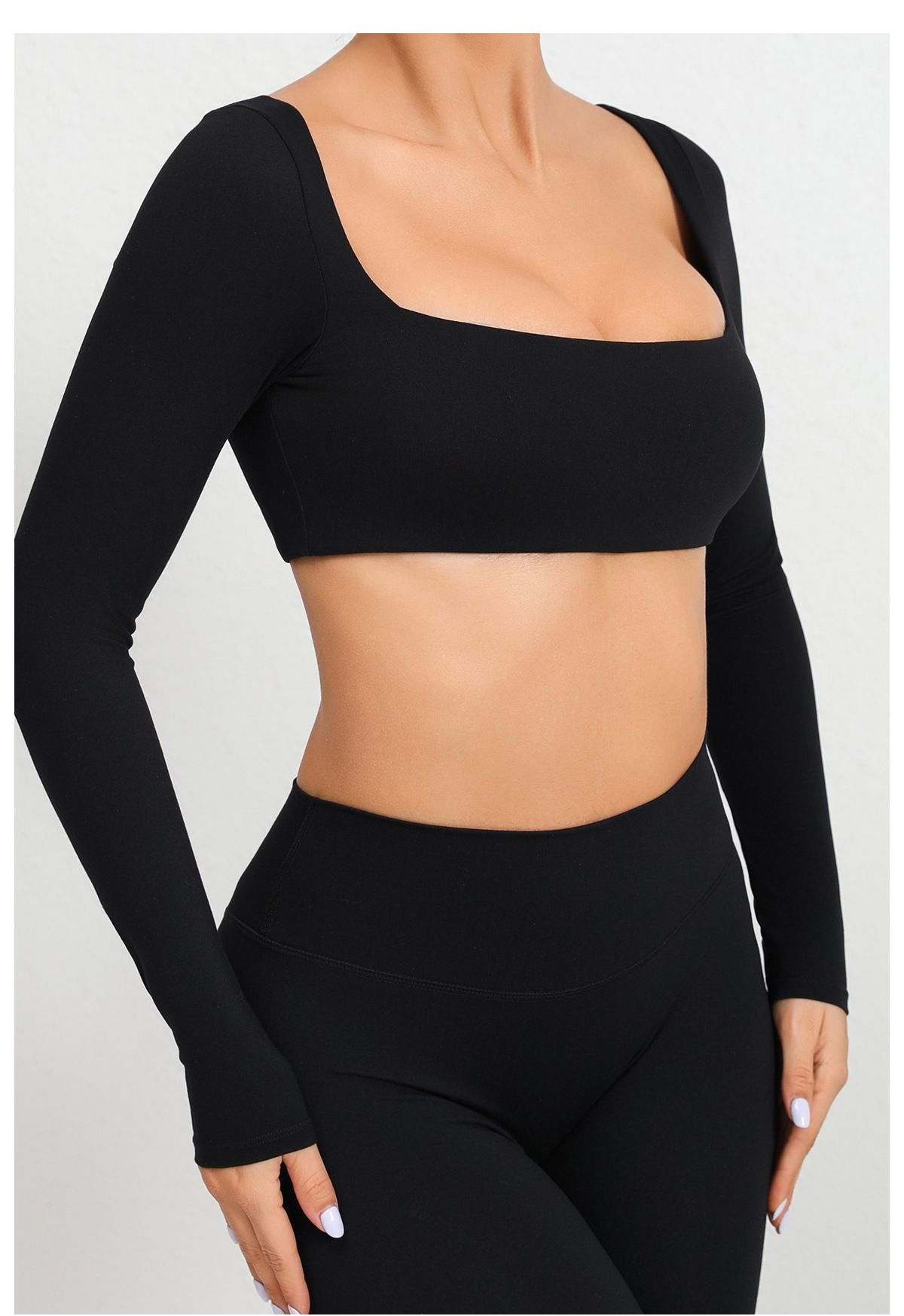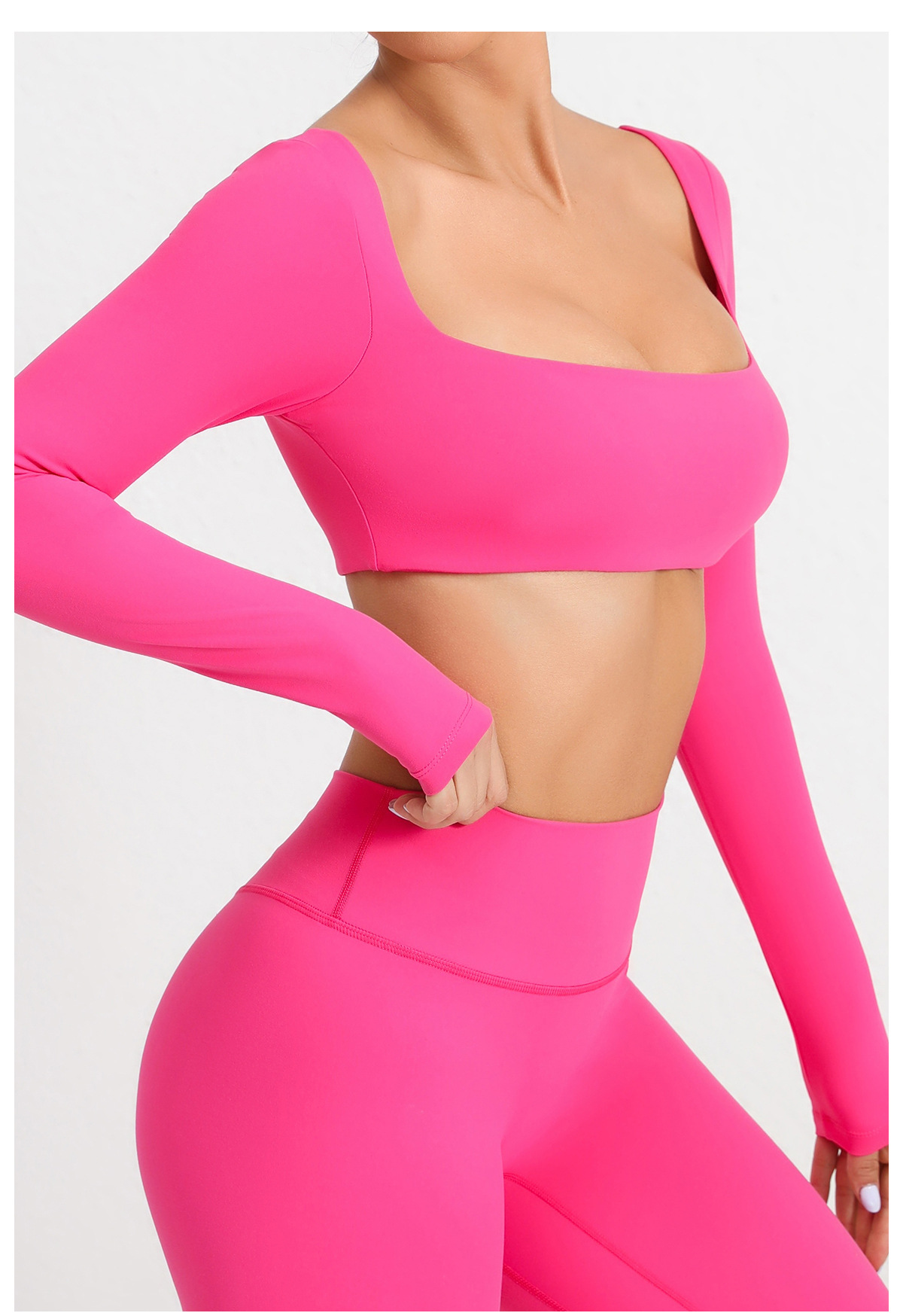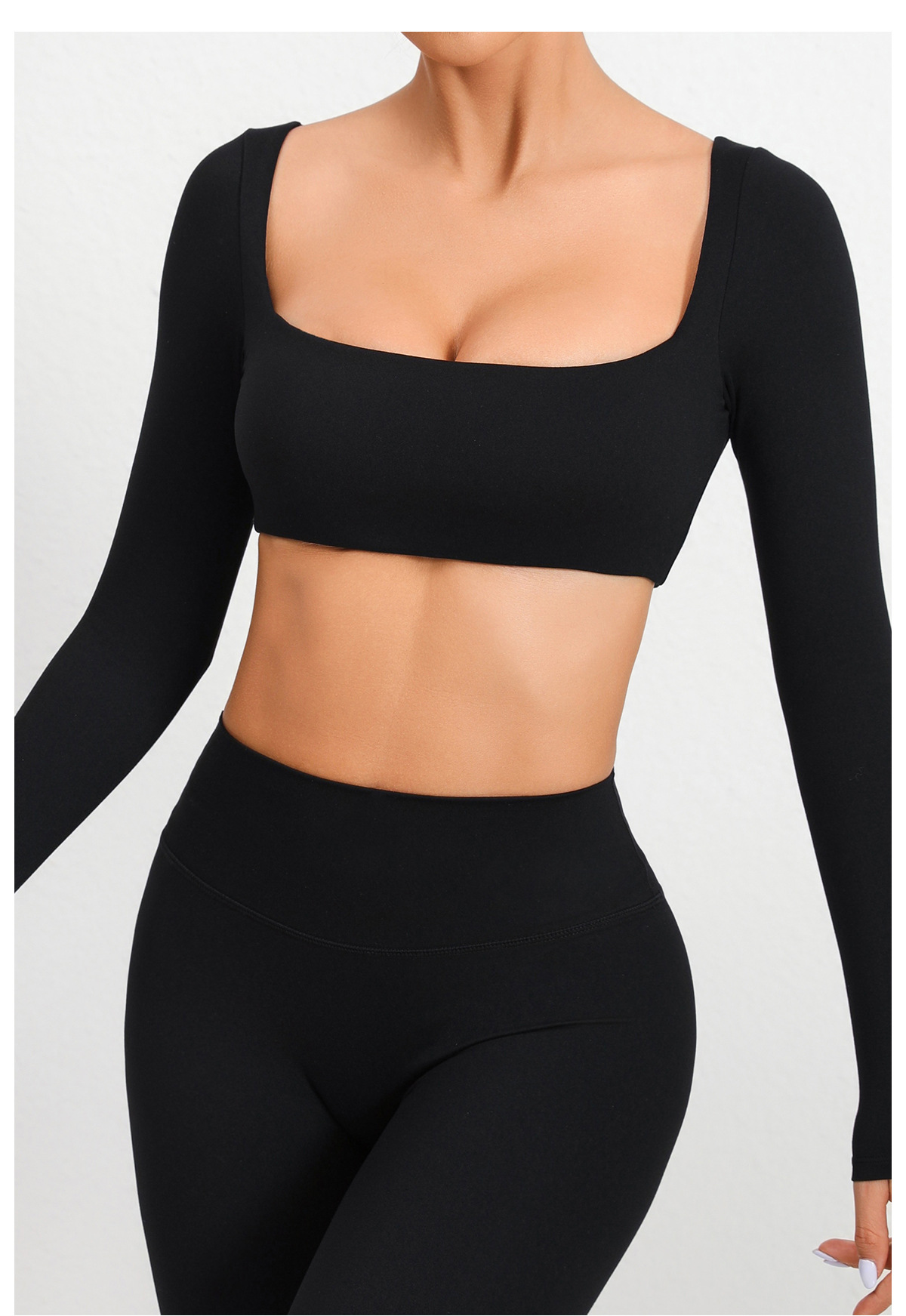 유럽과 미국의 목걸이 가슴 패드 긴팔 요가 의류 야외 달리기 피트니스 의류 빠른 건조 긴팔 티셔츠 스포츠 탑
