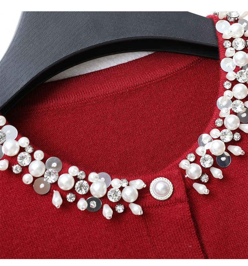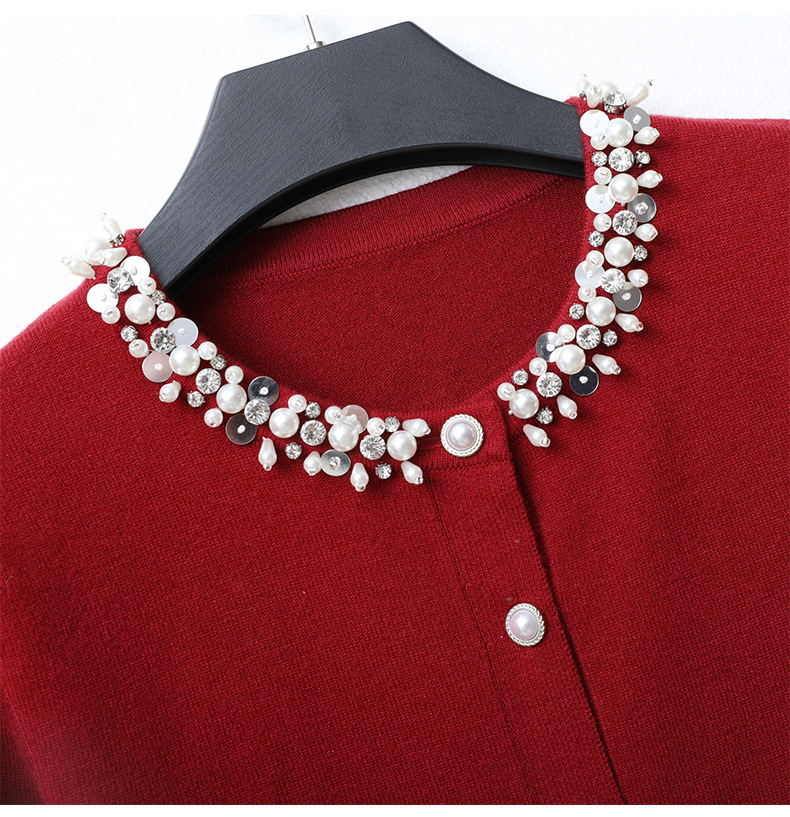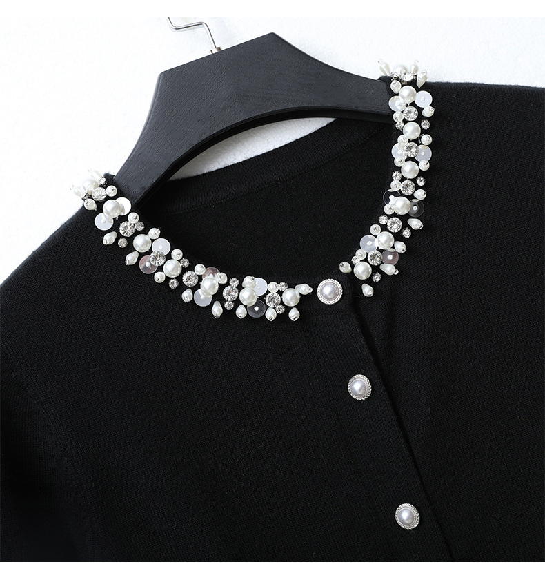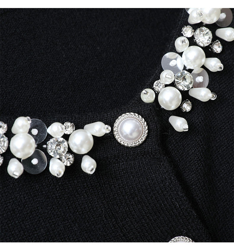 중공예 비즈 장식 블랙 니트 가디건 여성용 2025 가을 겨울 신상 루즈핏 슬림 얇은 스타일 외투 작은 향수풍 상의스토어 가기